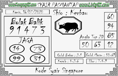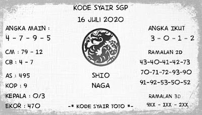 Pada dasarnya dalam semua permainan togel online ini sangatlah membutuhkan kepekaan atau kesadaran anda dalam membaca serta memprediksi nomor togel singapore. Oleh karena  itu syair Togel Singapore yang kami terbitkan ini akan sangat memudahkan para pejudi online saat memprediksi angka keluaran di periode selanjutnya. kami  sudah mempersiapkan dengan jelas tentang Prediksi togel Sgp 16 Juli 2020 untuk anda para pencinta judi online.