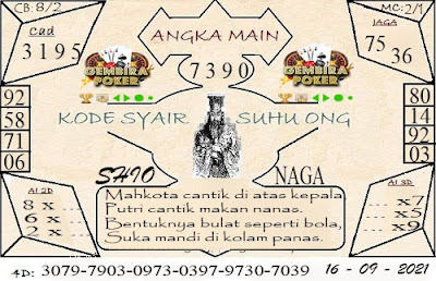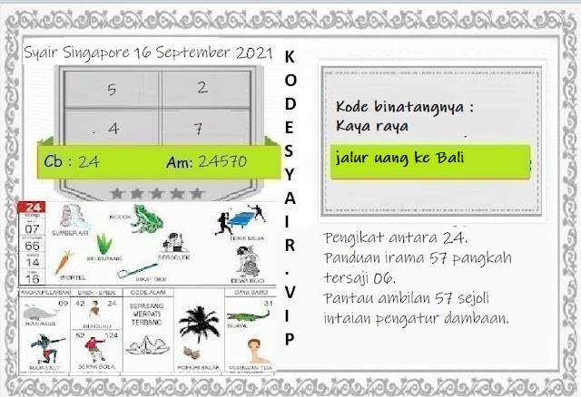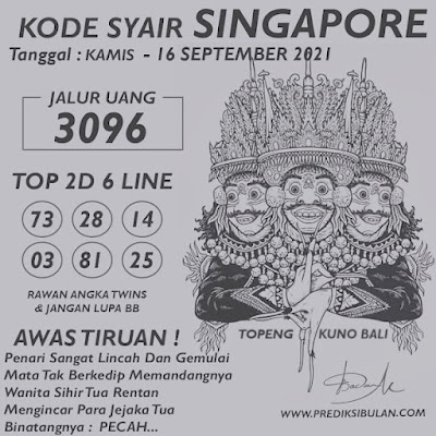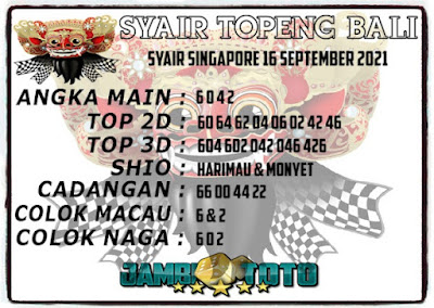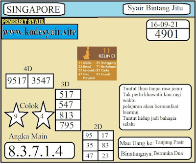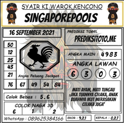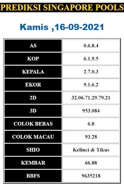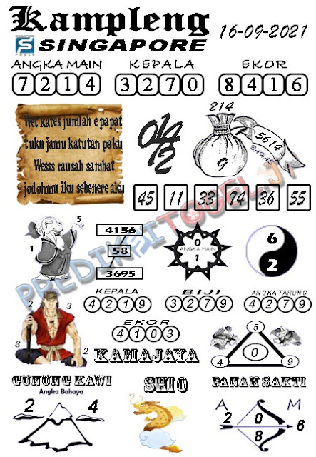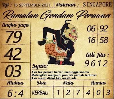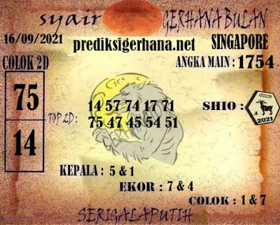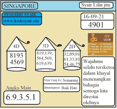 Pada dasarnya dalam semua permainan togel online ini sangatlah membutuhkan kepekaan atau kesadaran anda dalam membaca serta memprediksi nomor togel singapore. Oleh karena itu syair Togel Singapore yang kami terbitkan ini akan sangat memudahkan para pejudi online saat memprediksi angka keluaran di periode selanjutnya. kami sudah mempersiapkan dengan jelas tentang Prediksi togel Sgp 16 September 2021 untuk anda para pencinta judi online.