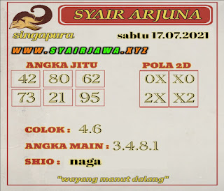 Pada dasarnya dalam semua permainan togel online ini sangatlah membutuhkan kepekaan atau kesadaran anda dalam membaca serta memprediksi nomor togel singapore. Oleh karena itu syair Togel Singapore yang kami terbitkan ini akan sangat memudahkan para pejudi online saat memprediksi angka keluaran di periode selanjutnya. kami sudah mempersiapkan dengan jelas tentang Prediksi togel Sgp 17 Juli 2021 untuk anda para pencinta judi online.