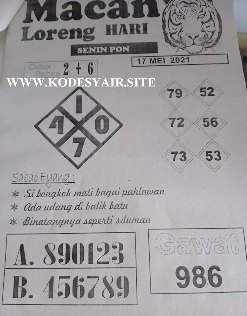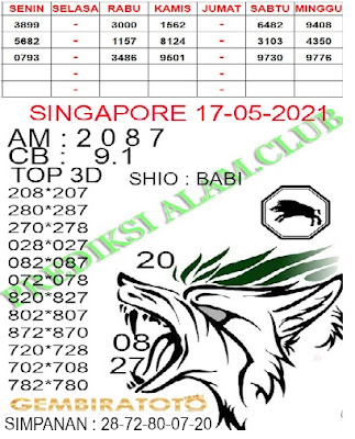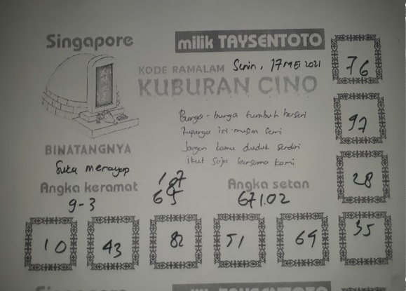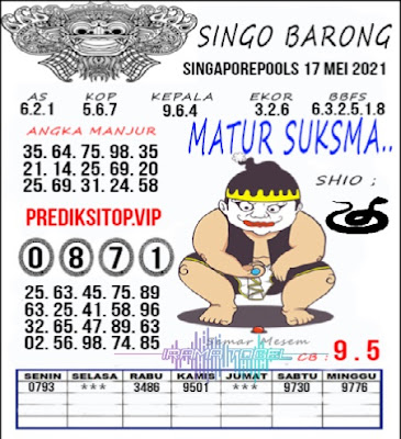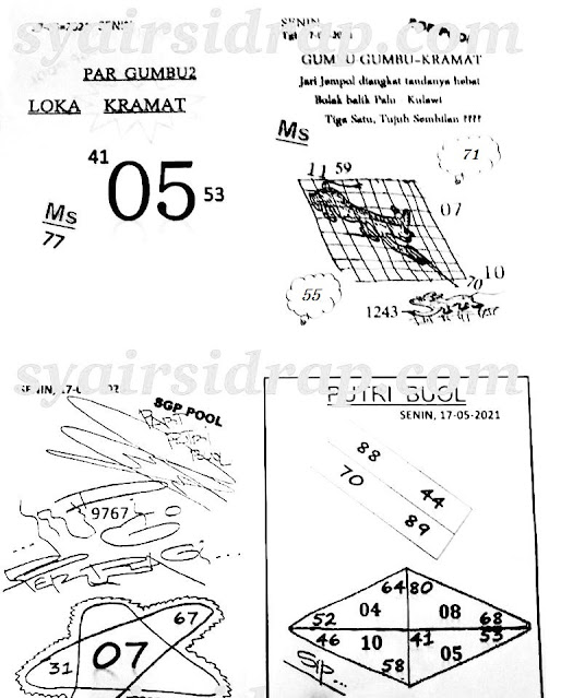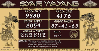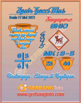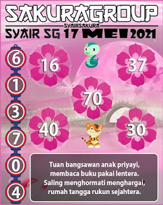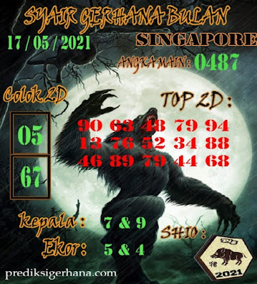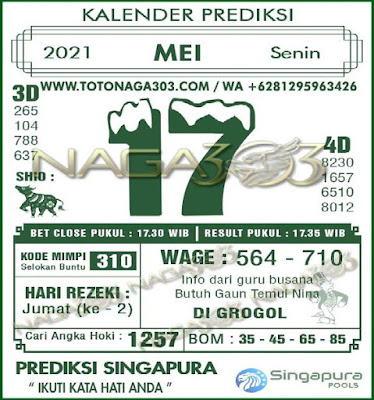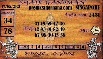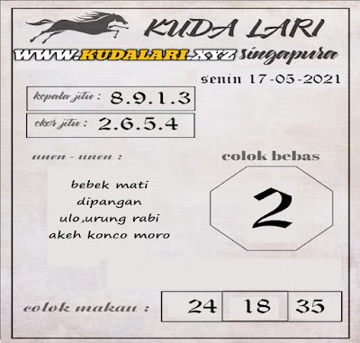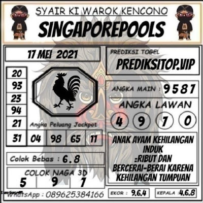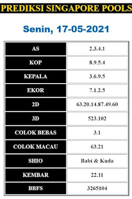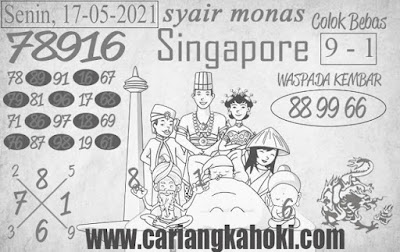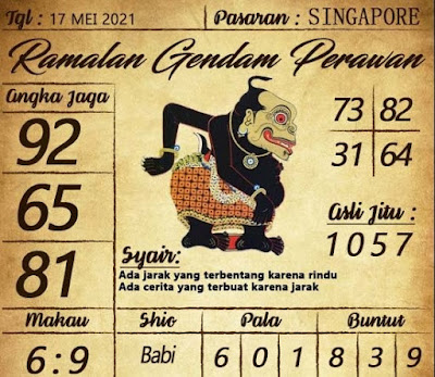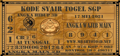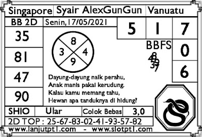 Pada dasarnya dalam semua permainan togel online ini sangatlah membutuhkan kepekaan atau kesadaran anda dalam membaca serta memprediksi nomor togel singapore. Oleh karena itu syair Togel Singapore yang kami terbitkan ini akan sangat memudahkan para pejudi online saat memprediksi angka keluaran di periode selanjutnya. kami sudah mempersiapkan dengan jelas tentang Prediksi togel Sgp 17 Mei 2021 untuk anda para pencinta judi online.