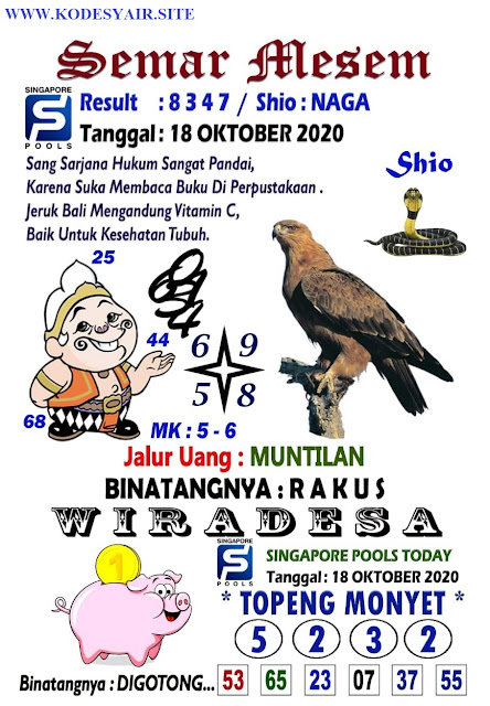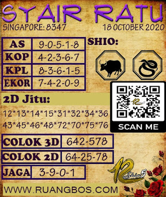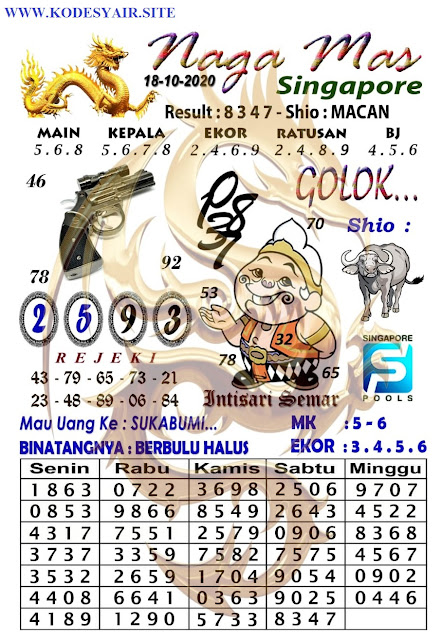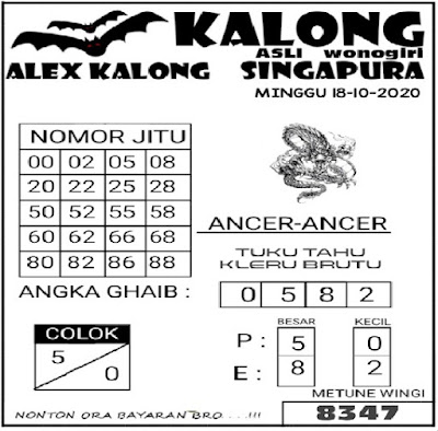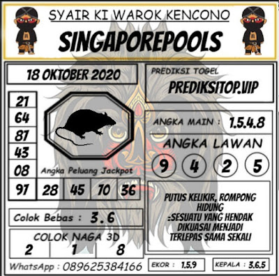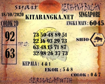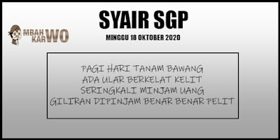Pada dasarnya dalam semua permainan togel online ini sangatlah membutuhkan kepekaan atau kesadaran anda dalam membaca serta memprediksi nomor togel singapore. Oleh karena itu syair Togel Singapore yang kami terbitkan ini akan sangat memudahkan para pejudi online saat memprediksi angka keluaran di periode selanjutnya. kami sudah mempersiapkan dengan jelas tentang Prediksi togel Sgp 18 October 2020 untuk anda para pencinta judi online.
