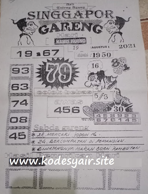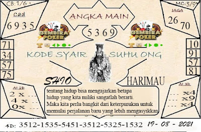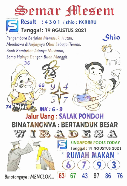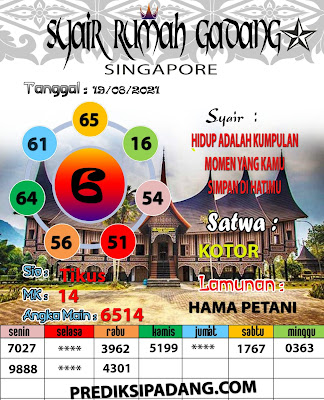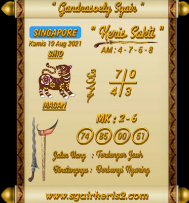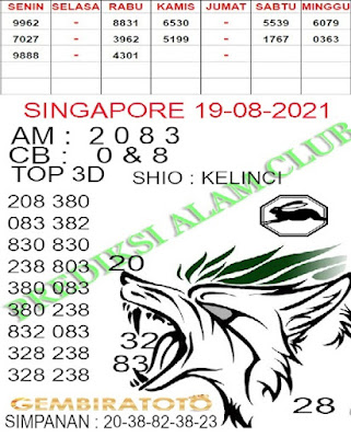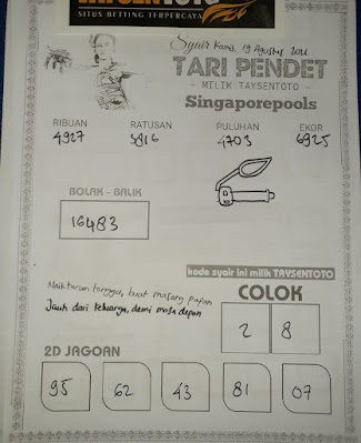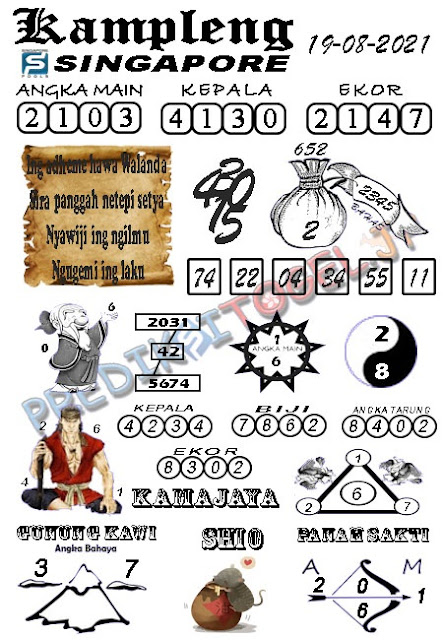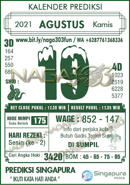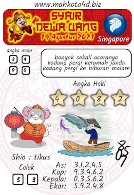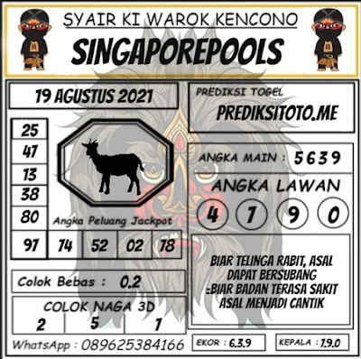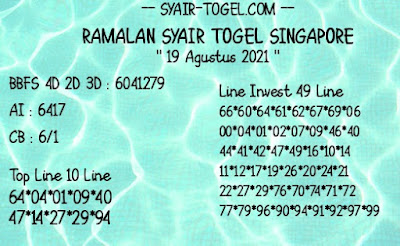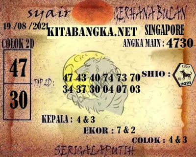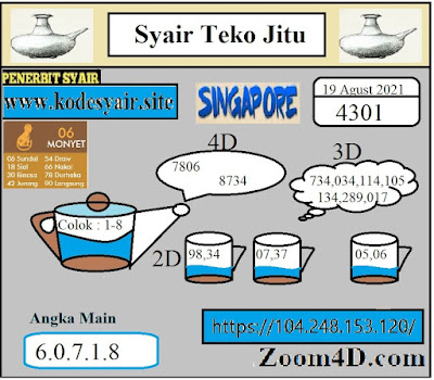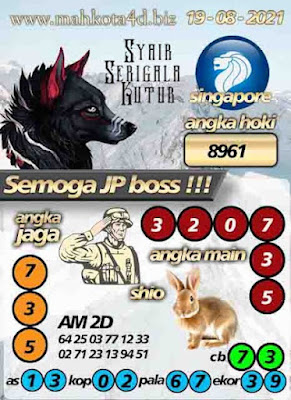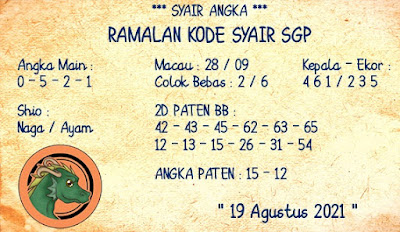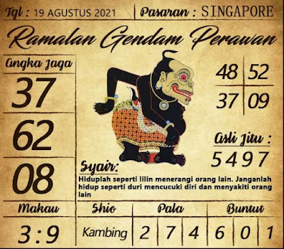 Pada dasarnya dalam semua permainan togel online ini sangatlah membutuhkan kepekaan atau kesadaran anda dalam membaca serta memprediksi nomor togel singapore. Oleh karena itu syair Togel Singapore yang kami terbitkan ini akan sangat memudahkan para pejudi online saat memprediksi angka keluaran di periode selanjutnya. kami sudah mempersiapkan dengan jelas tentang Prediksi togel Sgp 19 Agustus 2021 untuk anda para pencinta judi online.