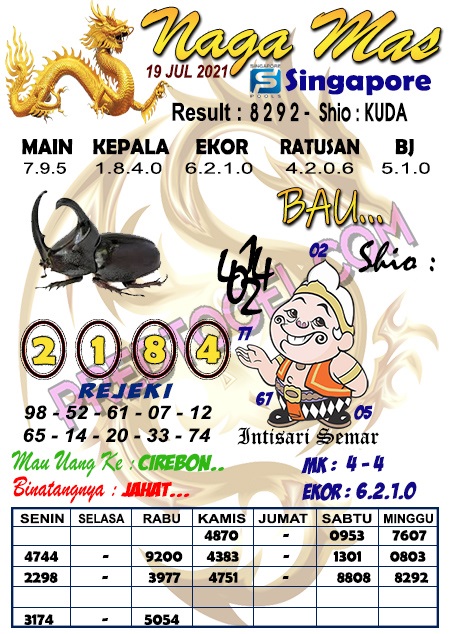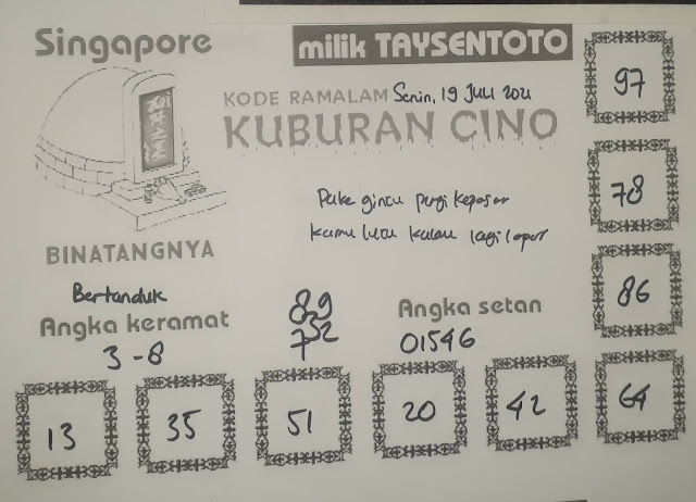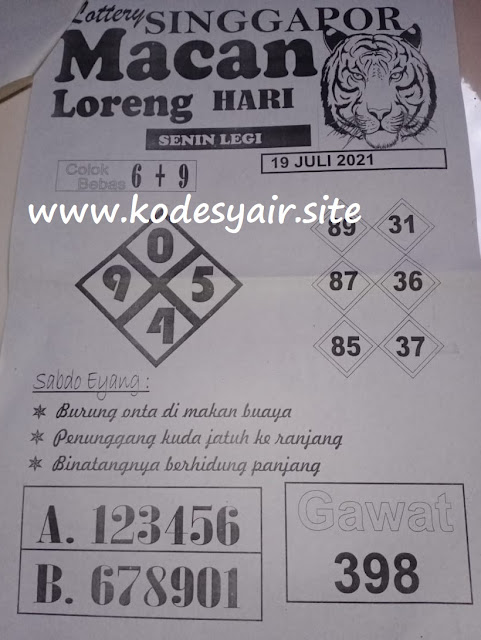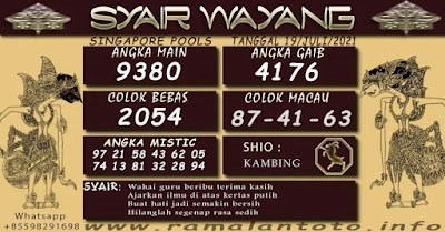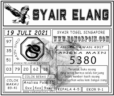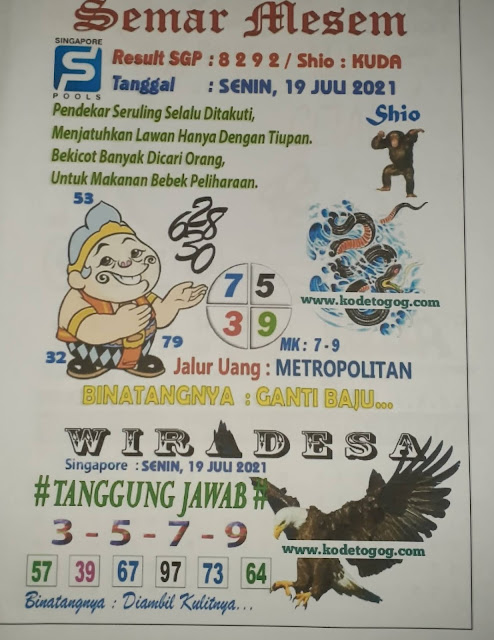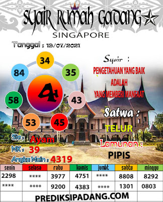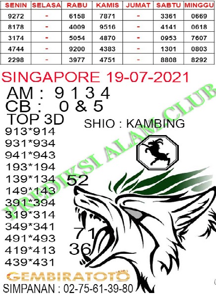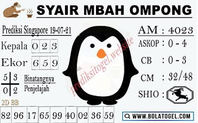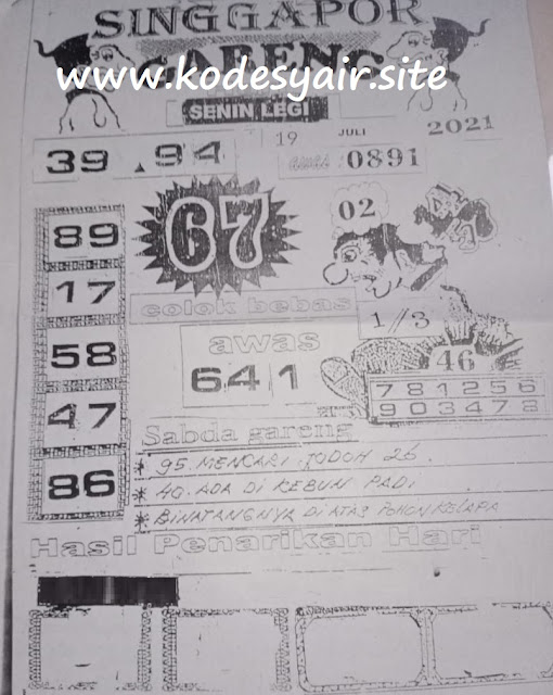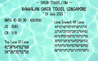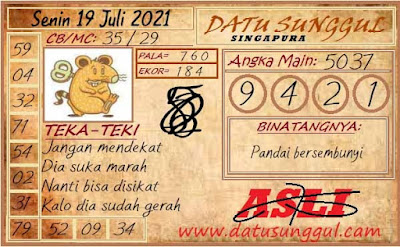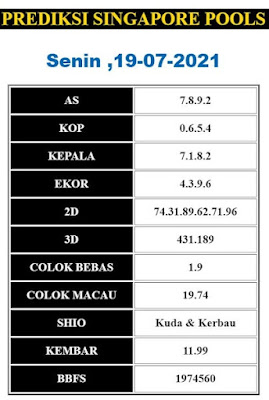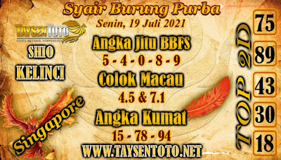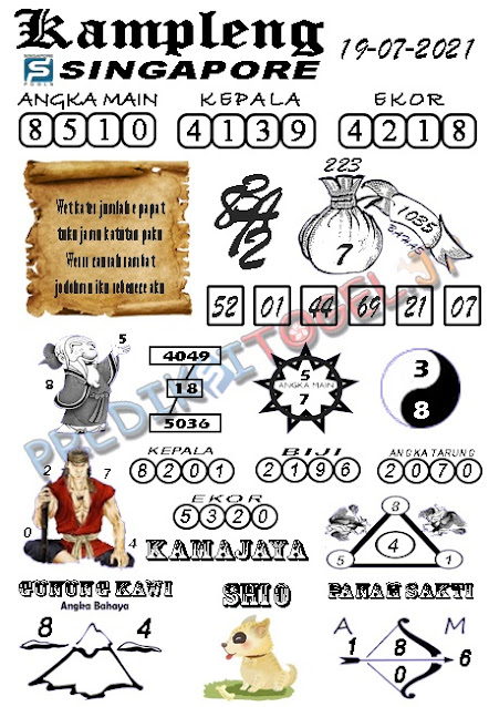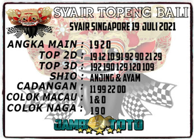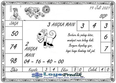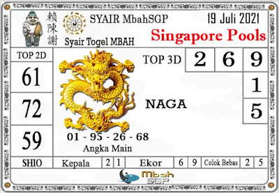 Pada dasarnya dalam semua permainan togel online ini sangatlah membutuhkan kepekaan atau kesadaran anda dalam membaca serta memprediksi nomor togel singapore. Oleh karena itu syair Togel Singapore yang kami terbitkan ini akan sangat memudahkan para pejudi online saat memprediksi angka keluaran di periode selanjutnya. kami sudah mempersiapkan dengan jelas tentang Prediksi togel Sgp 19 Juli 2021 untuk anda para pencinta judi online.