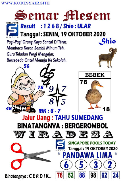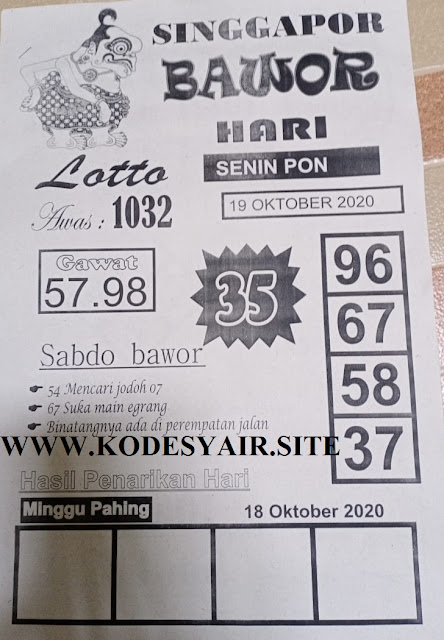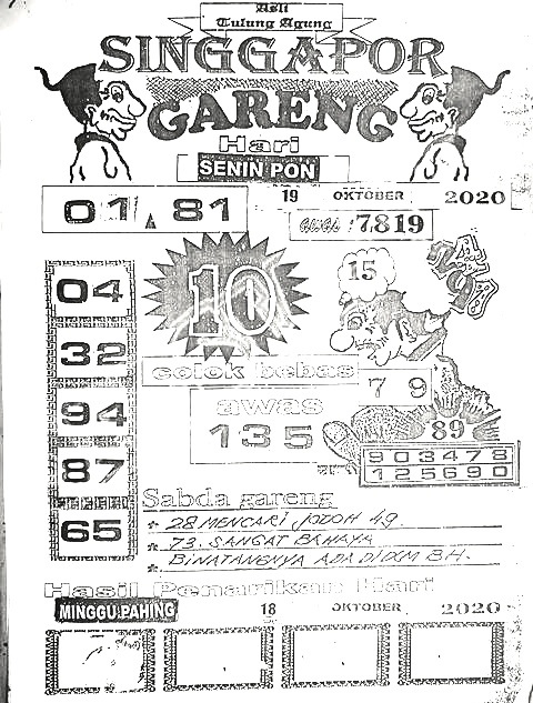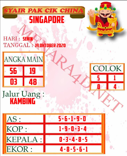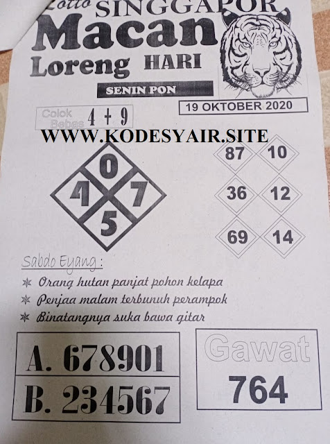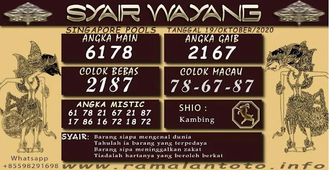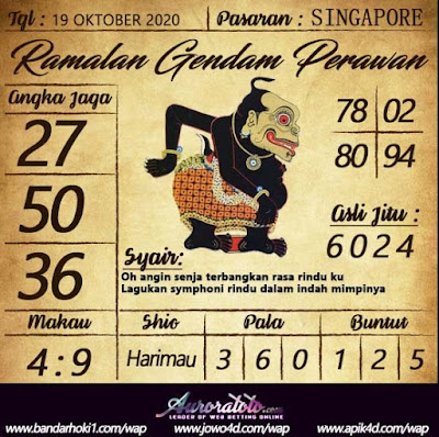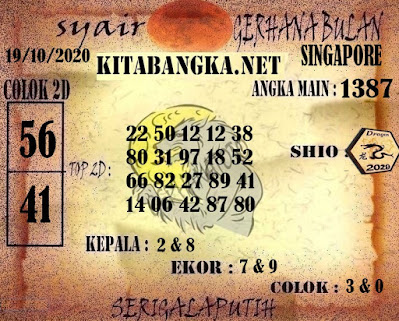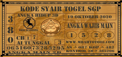 Pada dasarnya dalam semua permainan togel online ini sangatlah membutuhkan kepekaan atau kesadaran anda dalam membaca serta memprediksi nomor togel singapore. Oleh karena itu syair Togel Singapore yang kami terbitkan ini akan sangat memudahkan para pejudi online saat memprediksi angka keluaran di periode selanjutnya. kami sudah mempersiapkan dengan jelas tentang Prediksi Togel Sgp 19 October 2020 untuk anda para pencinta judi online.