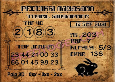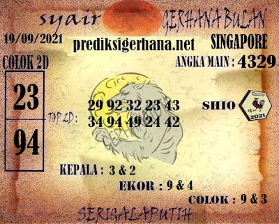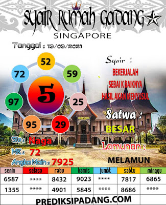 Pada dasarnya dalam semua permainan togel online ini sangatlah membutuhkan kepekaan atau kesadaran anda dalam membaca serta memprediksi nomor togel singapore. Oleh karena  itu syair Togel Singapore yang kami terbitkan ini akan sangat memudahkan para pejudi online saat memprediksi angka keluaran di periode selanjutnya. kami  sudah mempersiapkan dengan jelas tentang Prediksi togel Sgp 19 September 2021 untuk anda para pencinta judi online.