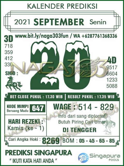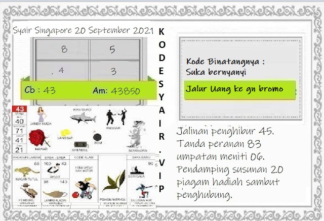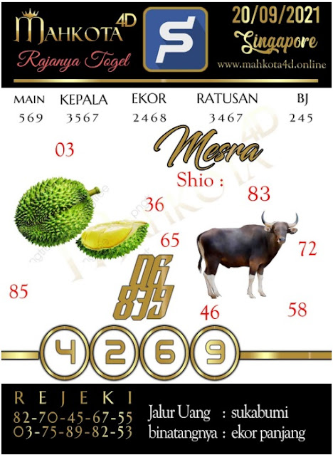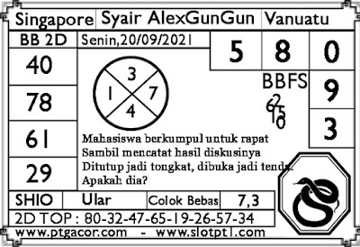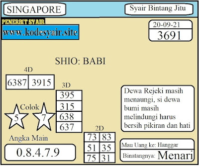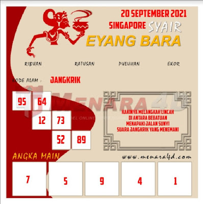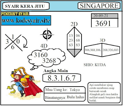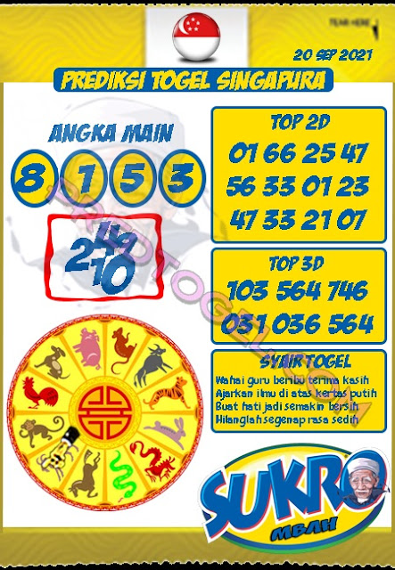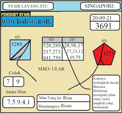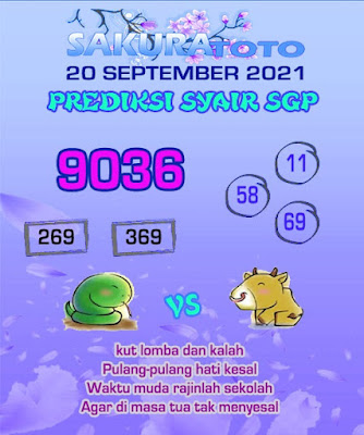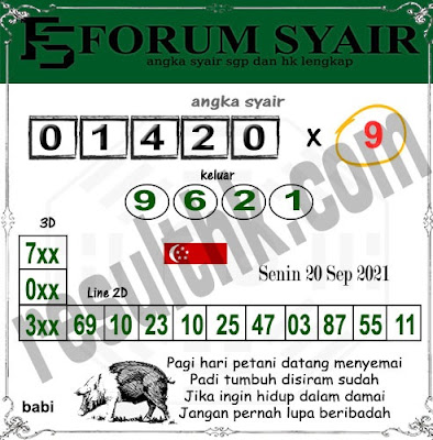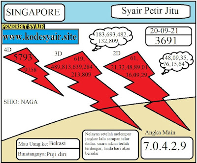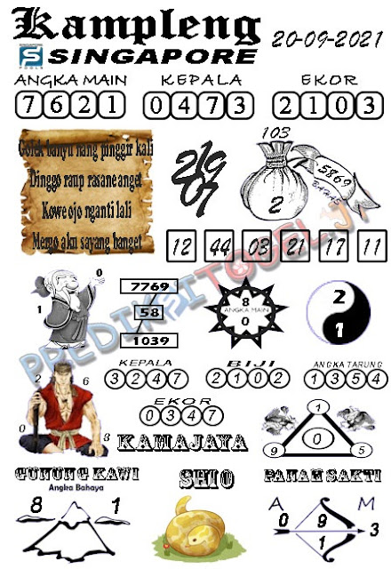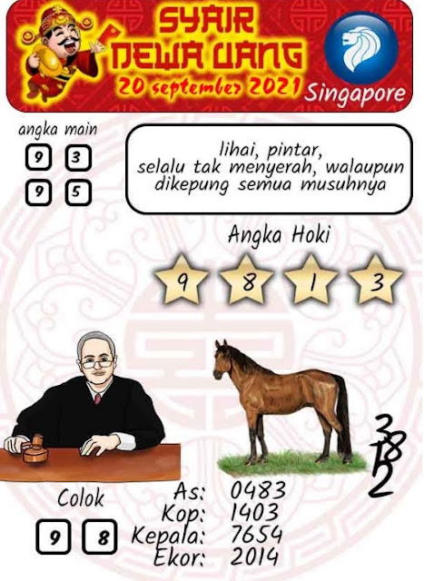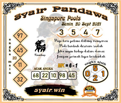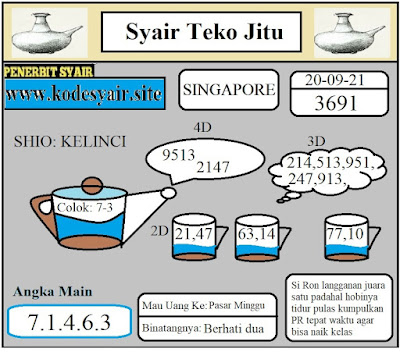 Pada dasarnya dalam semua permainan togel online ini sangatlah membutuhkan kepekaan atau kesadaran anda dalam membaca serta memprediksi nomor togel singapore. Oleh karena itu syair Togel Singapore yang kami terbitkan ini akan sangat memudahkan para pejudi online saat memprediksi angka keluaran di periode selanjutnya. kami sudah mempersiapkan dengan jelas tentang Prediksi togel Sgp 20 September 2021 untuk anda para pencinta judi online.