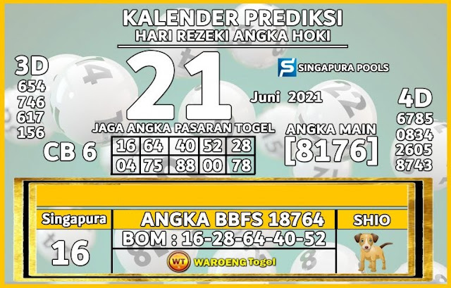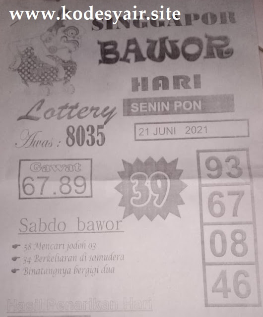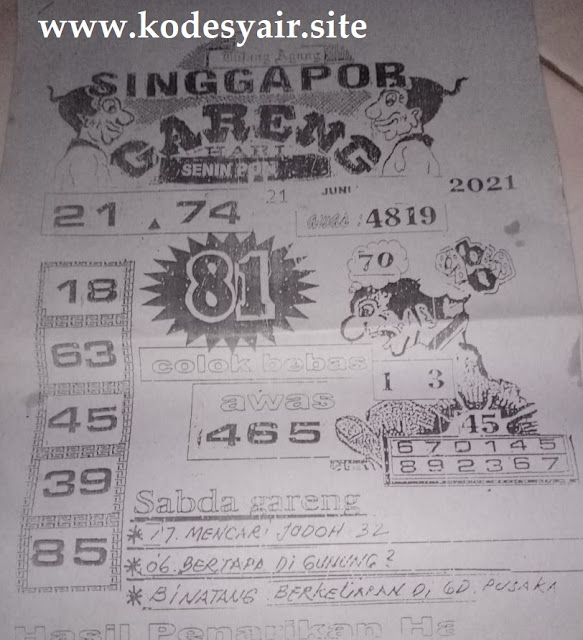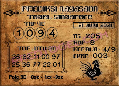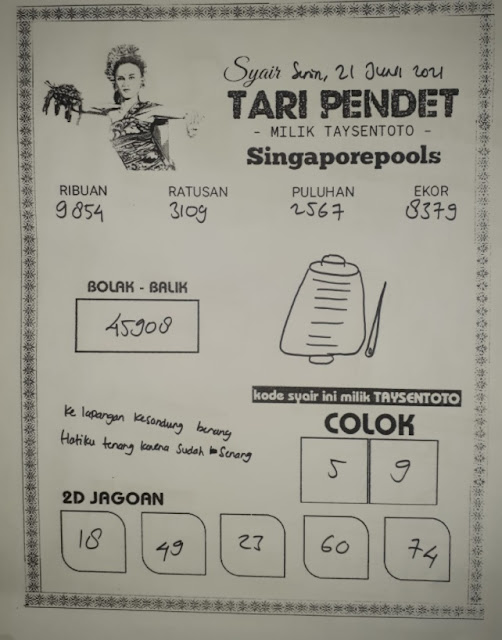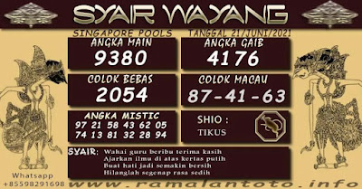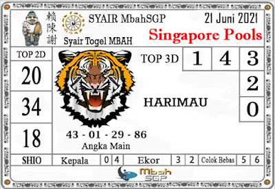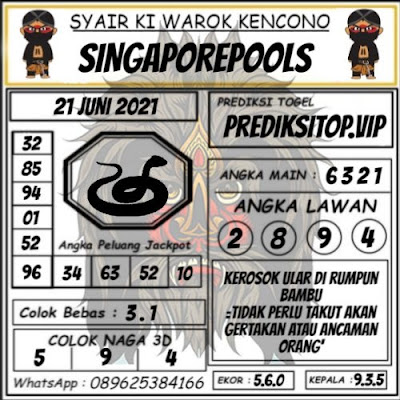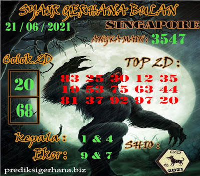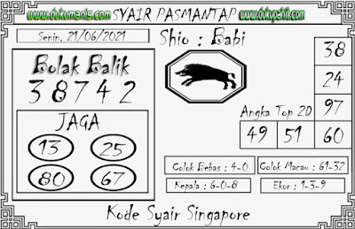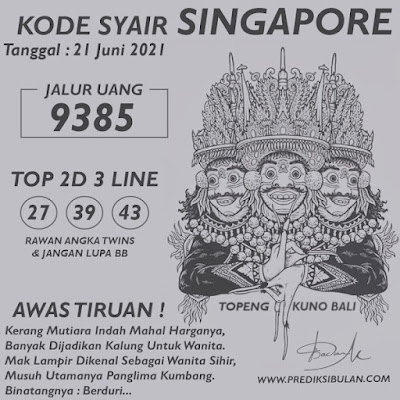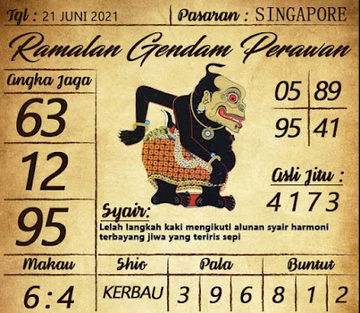 Pada dasarnya dalam semua permainan togel online ini sangatlah membutuhkan kepekaan atau kesadaran anda dalam membaca serta memprediksi nomor togel singapore. Oleh karena itu syair Togel Singapore yang kami terbitkan ini akan sangat memudahkan para pejudi online saat memprediksi angka keluaran di periode selanjutnya. kami sudah mempersiapkan dengan jelas tentang Prediksi togel Sgp 21 Jumi 2021 untuk anda para pencinta judi online.