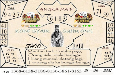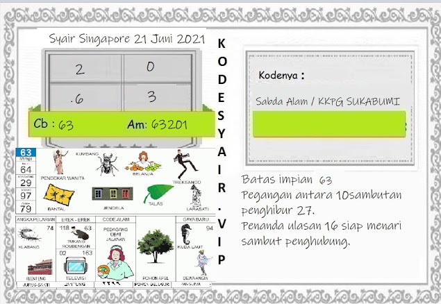 Tetap pergunakan naluri diri sendiri untuk membaca serta mengerti makna asal Syair Sgp 21 Juni 2021. Para Pemain Judi Online sebaiknya jangan terlalu terburu – buru dalam membaca makna yang berasal dari prediksi syair singapore kami. Pahamilah secara pelan serta pilih salah satu diantara syair yang paling banyak dicari oleh para pecinta togel online. Meskipun syair togel yang kami berikan ini sangat banyak serta beraneka ragam, tetapi pada dasarnya ada beberapa syair yang sangat banyak dicari seperti syair kampleng, syair pandawa, syair mbah semar, serta syair naga mas.