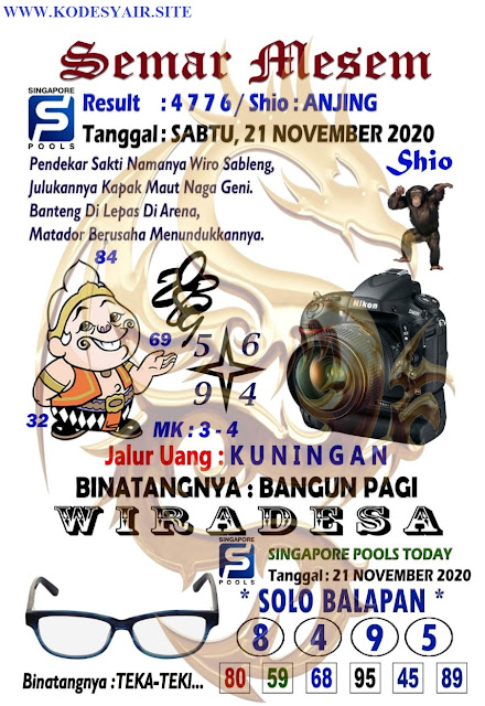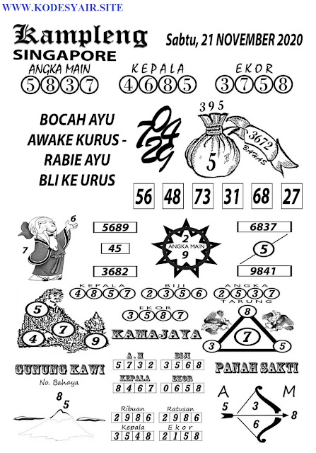Pada dasarnya dalam semua permainan togel online ini sangatlah membutuhkan kepekaan atau kesadaran anda dalam membaca serta memprediksi nomor togel singapore. Oleh karena itu syair Togel Singapore yang kami terbitkan ini akan sangat memudahkan para pejudi online saat memprediksi angka keluaran di periode selanjutnya. kami sudah mempersiapkan dengan jelas tentang Prediksi togel Sgp 21 November 2020 untuk anda para pencinta judi online.