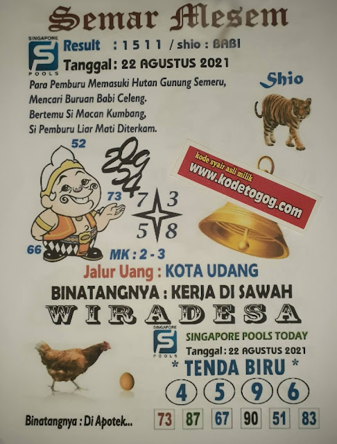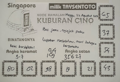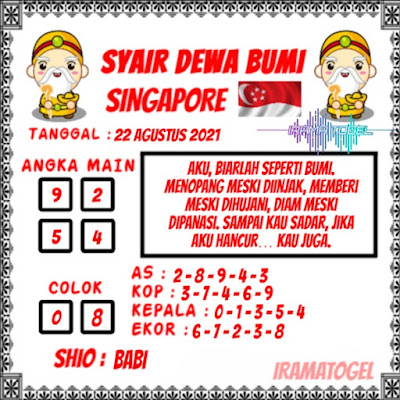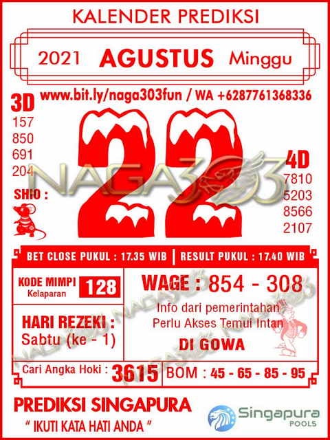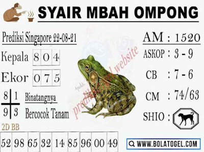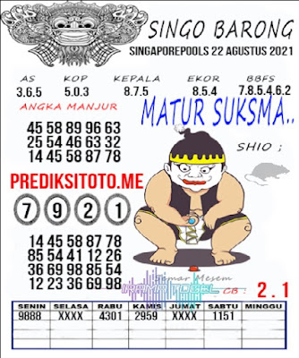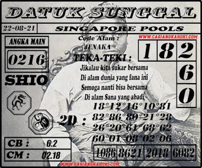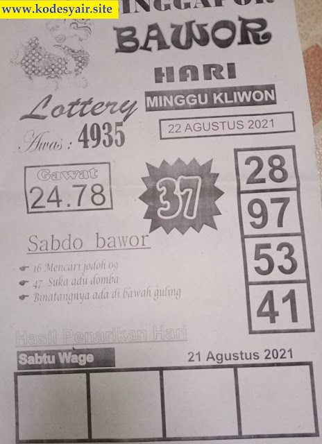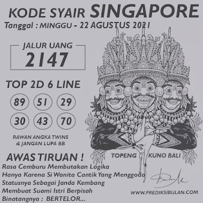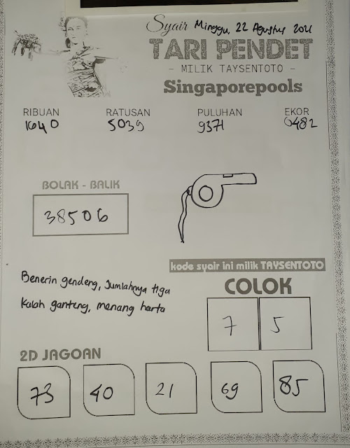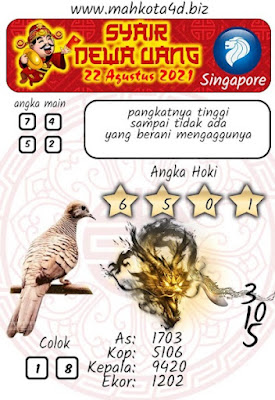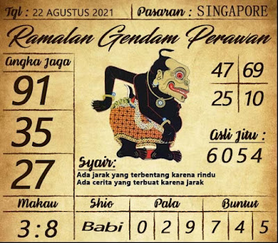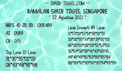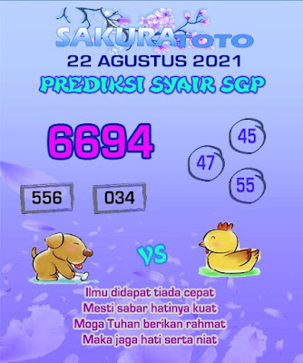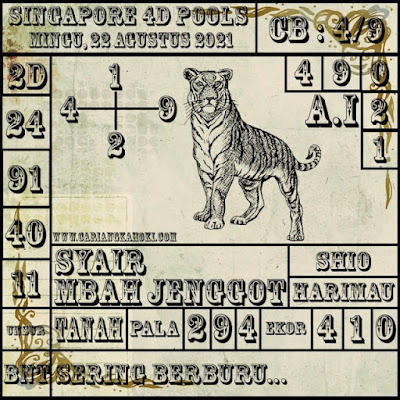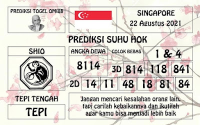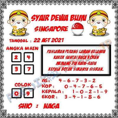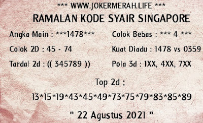 Pada dasarnya dalam semua permainan togel online ini sangatlah membutuhkan kepekaan atau kesadaran anda dalam membaca serta memprediksi nomor togel singapore. Oleh karena itu syair Togel Singapore yang kami terbitkan ini akan sangat memudahkan para pejudi online saat memprediksi angka keluaran di periode selanjutnya. kami sudah mempersiapkan dengan jelas tentang Prediksi togel Sgp 22 Agustus 2021 untuk anda para pencinta judi online.