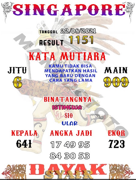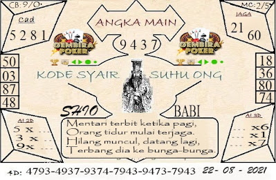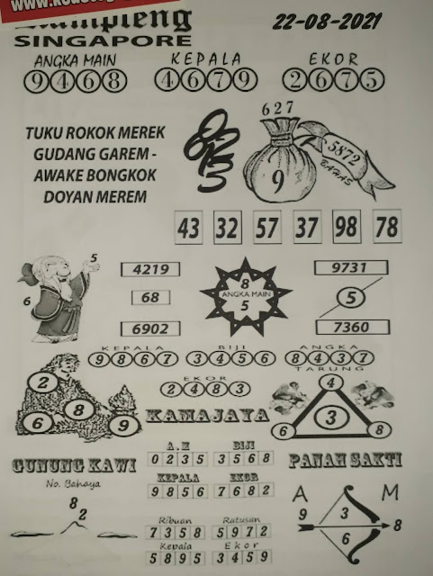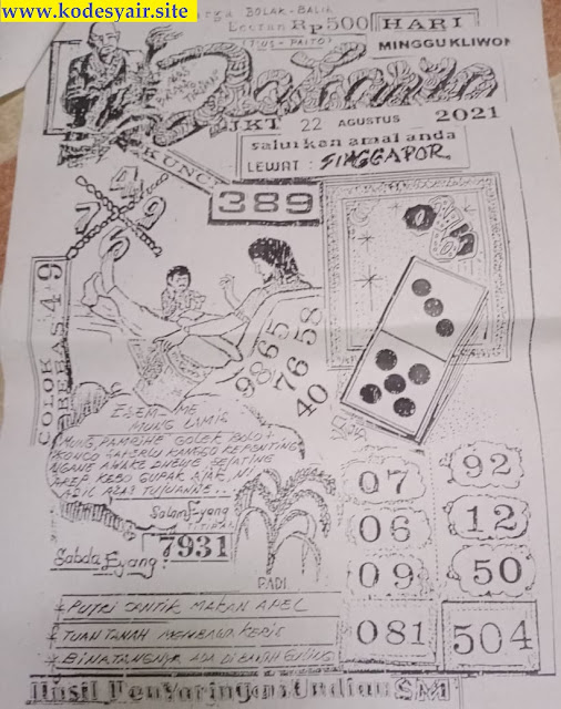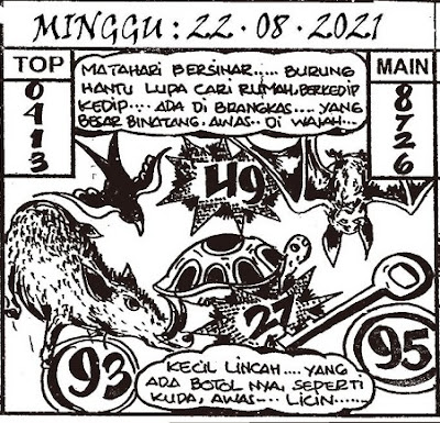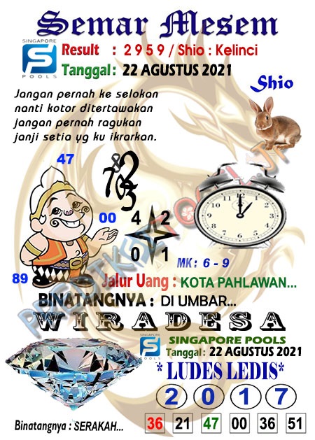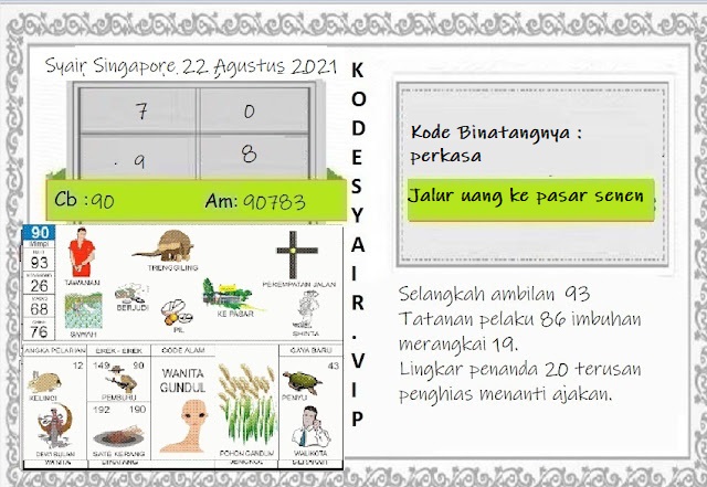 Tetap pergunakan naluri diri sendiri untuk membaca serta mengerti makna asal Syair Sgp 22 Agustus 2021. Para Pemain Judi Online sebaiknya jangan terlalu terburu – buru dalam membaca makna yang berasal dari prediksi syair singapore kami. Pahamilah secara pelan serta pilih salah satu diantara syair yang paling banyak dicari oleh para pecinta togel online. Meskipun syair togel yang kami berikan ini sangat banyak serta beraneka ragam, tetapi pada dasarnya ada beberapa syair yang sangat banyak dicari seperti syair kampleng, syair pandawa, syair mbah semar, serta syair naga mas.