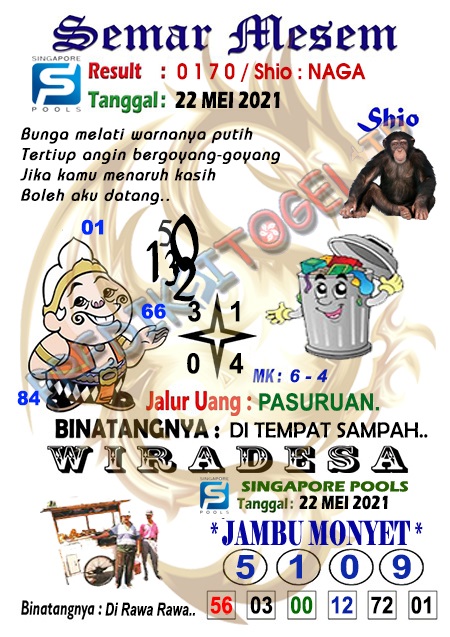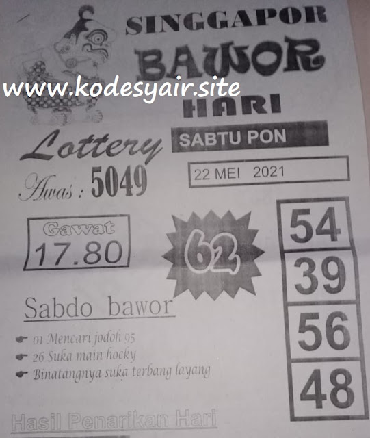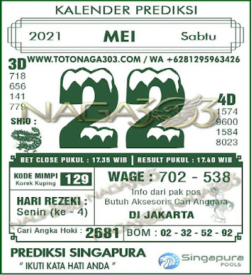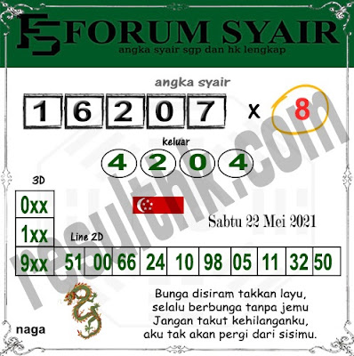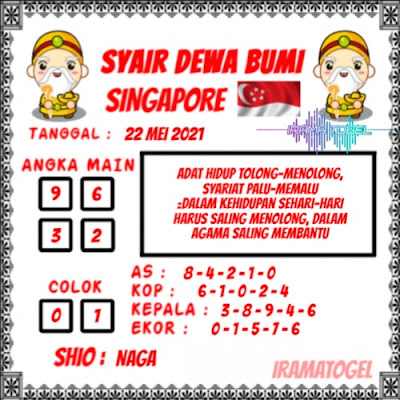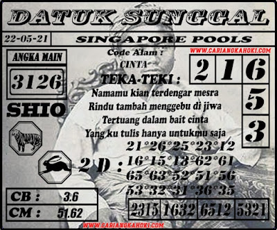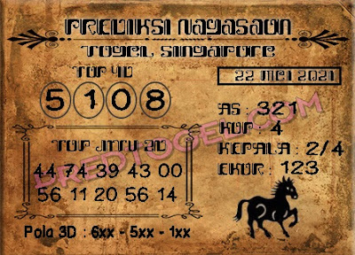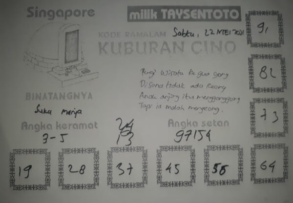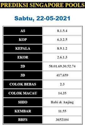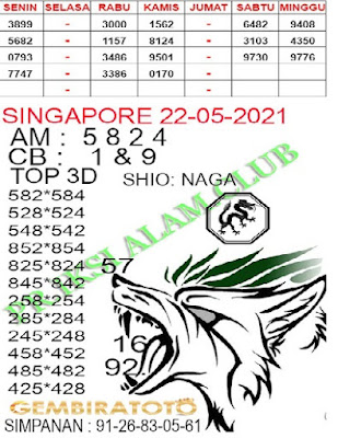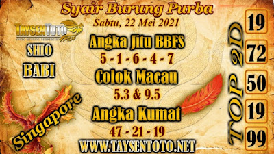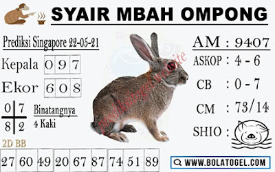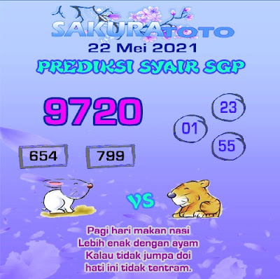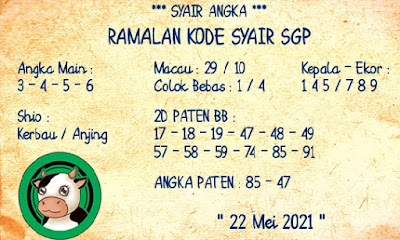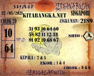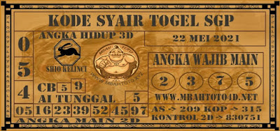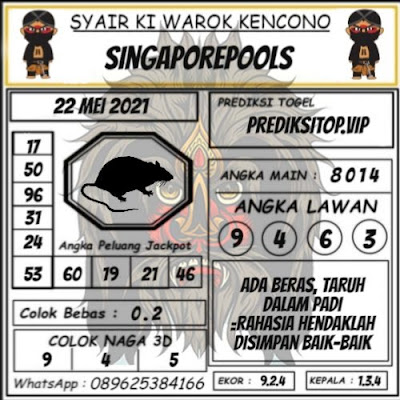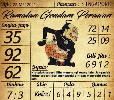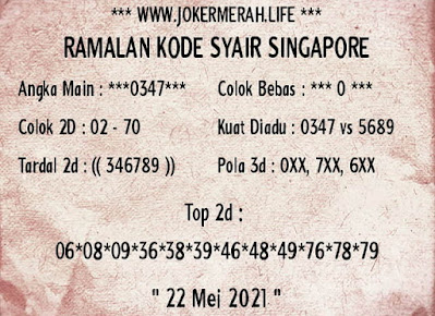 Pada dasarnya dalam semua permainan togel online ini sangatlah membutuhkan kepekaan atau kesadaran anda dalam membaca serta memprediksi nomor togel singapore. Oleh karena itu syair Togel Singapore yang kami terbitkan ini akan sangat memudahkan para pejudi online saat memprediksi angka keluaran di periode selanjutnya. kami sudah mempersiapkan dengan jelas tentang Prediksi togel Sgp 22 Mei 2021 untuk anda para pencinta judi online.