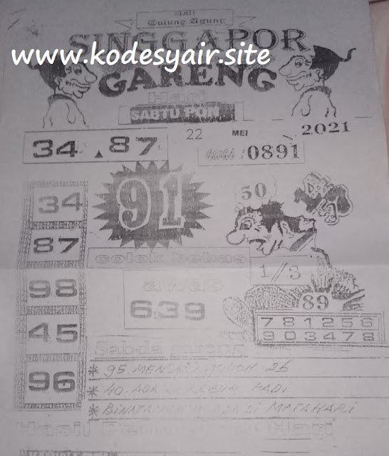 Tetap pergunakan naluri diri sendiri untuk membaca serta mengerti makna asal Syair Sgp 22 Mei 2021. Para Pemain Judi Online sebaiknya jangan terlalu terburu – buru dalam membaca makna yang berasal dari prediksi syair singapore kami. Pahamilah secara pelan serta pilih salah satu diantara syair yang paling banyak dicari oleh para pecinta togel online. Meskipun syair togel yang kami berikan ini sangat banyak serta beraneka ragam, tetapi pada dasarnya ada beberapa syair yang sangat banyak dicari seperti syair kampleng, syair pandawa, syair mbah semar, serta syair naga mas.