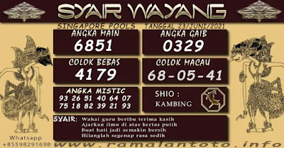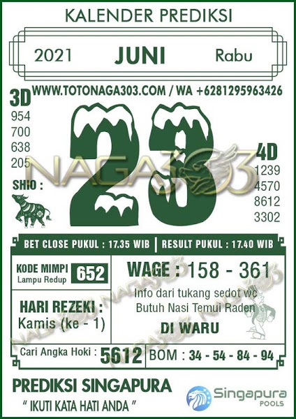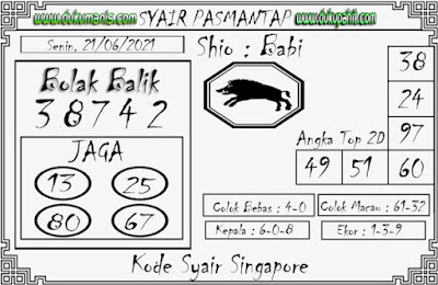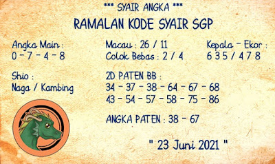 Pada dasarnya dalam semua permainan togel online ini sangatlah membutuhkan kepekaan atau kesadaran anda dalam membaca serta memprediksi nomor togel singapore. Oleh karena itu syair Togel Singapore yang kami terbitkan ini akan sangat memudahkan para pejudi online saat memprediksi angka keluaran di periode selanjutnya. kami sudah mempersiapkan dengan jelas tentang Prediksi togel Sgp 23 Jumi 2021 untuk anda para pencinta judi online.
