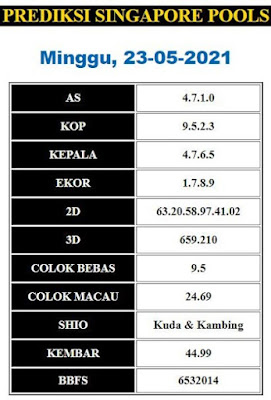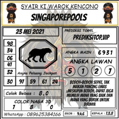 Pada dasarnya dalam semua permainan togel online ini sangatlah membutuhkan kepekaan atau kesadaran anda dalam membaca serta memprediksi nomor togel singapore. Oleh karena itu syair Togel Singapore yang kami terbitkan ini akan sangat memudahkan para pejudi online saat memprediksi angka keluaran di periode selanjutnya. kami sudah mempersiapkan dengan jelas tentang Prediksi togel Sgp 23 Mei 2021 untuk anda para pencinta judi online.