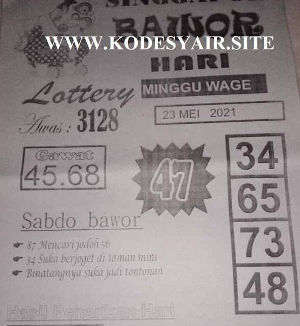Tetap pergunakan naluri diri sendiri untuk membaca serta mengerti makna asal Syair Sgp 23 Mei 2021. Para Pemain Judi Online sebaiknya jangan terlalu terburu – buru dalam membaca makna yang berasal dari prediksi syair singapore kami. Pahamilah secara pelan serta pilih salah satu diantara syair yang paling banyak dicari oleh para pecinta togel online. Meskipun syair togel yang kami berikan ini sangat banyak serta beraneka ragam, tetapi pada dasarnya ada beberapa syair yang sangat banyak dicari seperti syair kampleng, syair pandawa, syair mbah semar, serta syair naga mas.