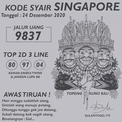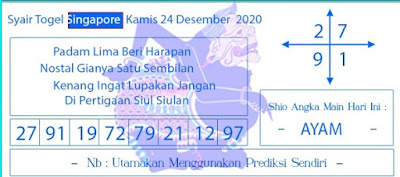 Pada dasarnya dalam semua permainan togel online ini sangatlah membutuhkan kepekaan atau kesadaran anda dalam membaca serta memprediksi nomor togel singapore. Oleh karena itu syair Togel Singapore yang kami terbitkan ini akan sangat memudahkan para pejudi online saat memprediksi angka keluaran di periode selanjutnya. kami sudah mempersiapkan dengan jelas tentang Prediksi Togel Sgp 24 Desember 2020 untuk anda para pencinta judi online.