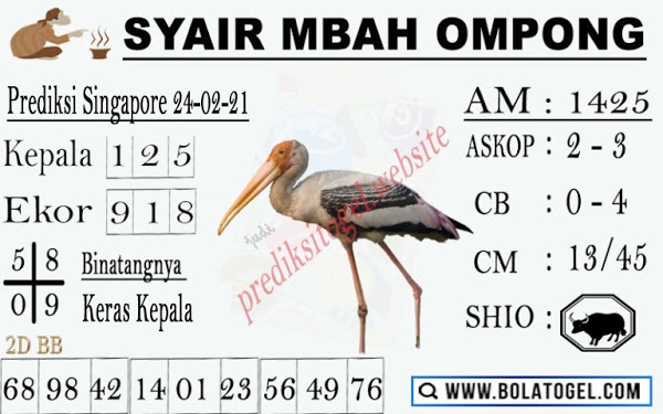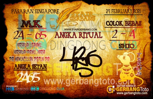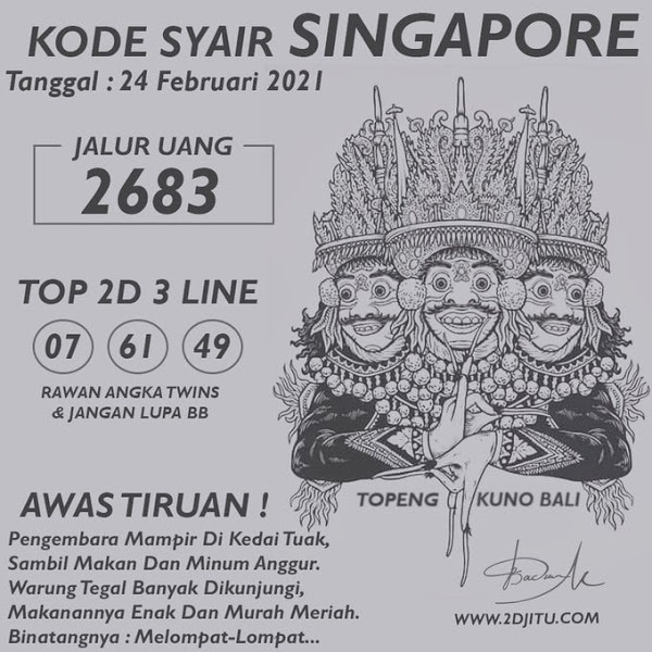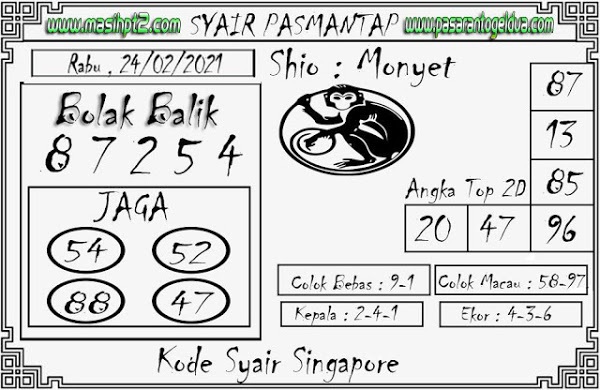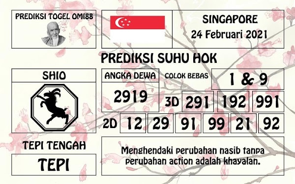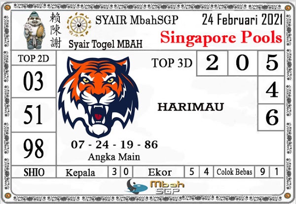 Pada dasarnya dalam semua permainan togel online ini sangatlah membutuhkan kepekaan atau kesadaran anda dalam membaca serta memprediksi nomor togel singapore. Oleh karena itu syair Togel Singapore yang kami terbitkan ini akan sangat memudahkan para pejudi online saat memprediksi angka keluaran di periode selanjutnya. kami sudah mempersiapkan dengan jelas tentang Prediksi togel Sgp 24 Februari 2021 untuk anda para pencinta judi online.