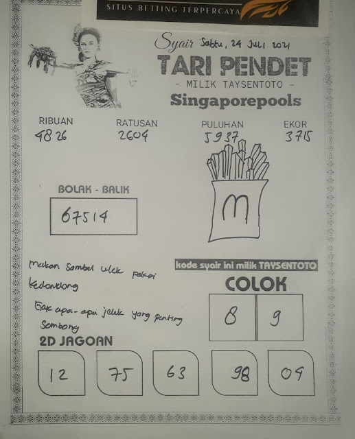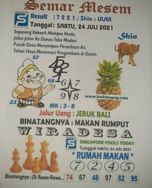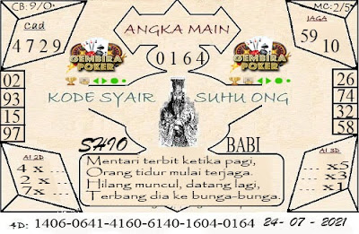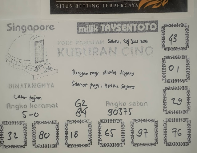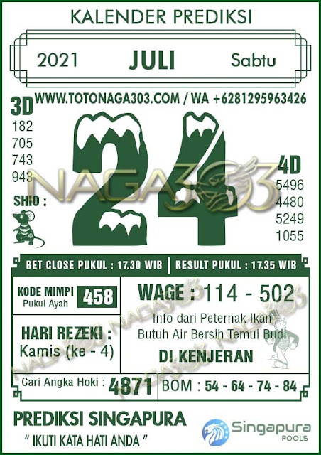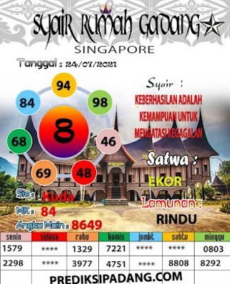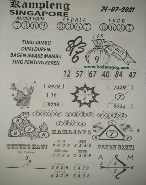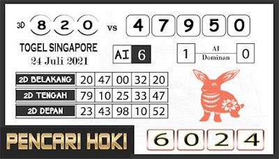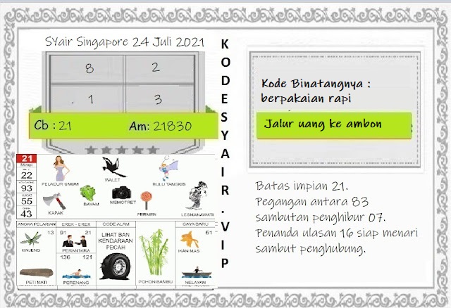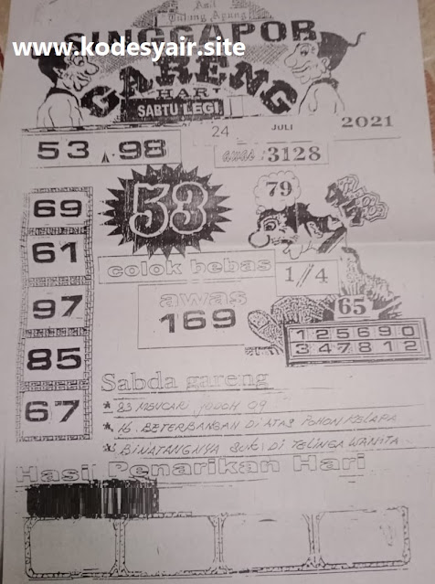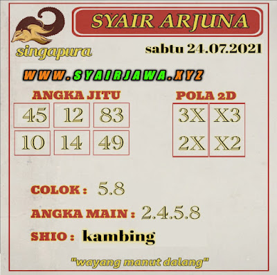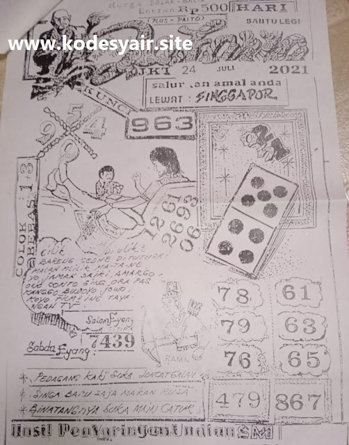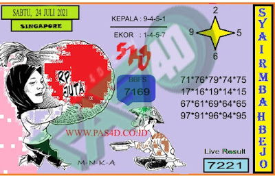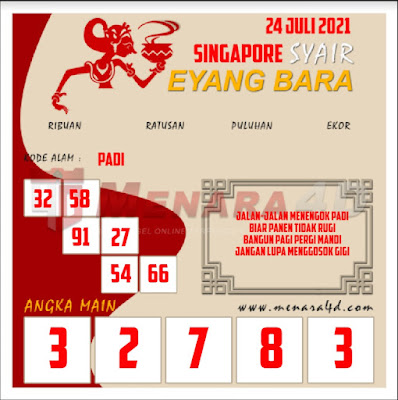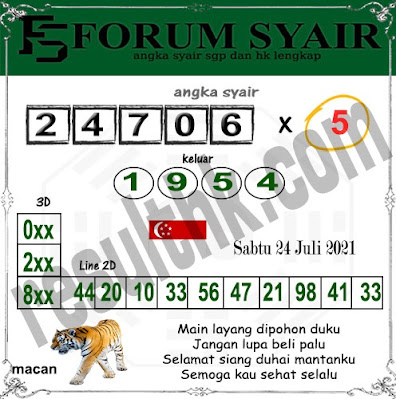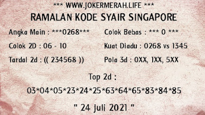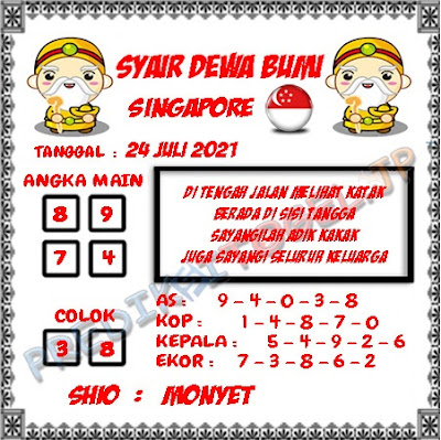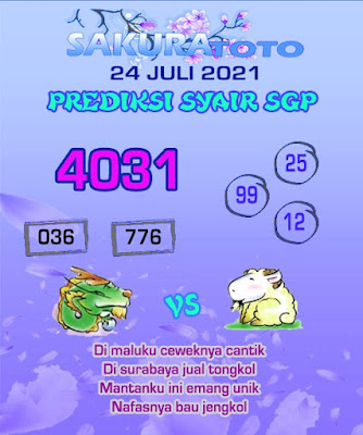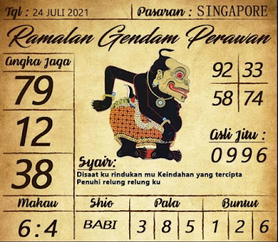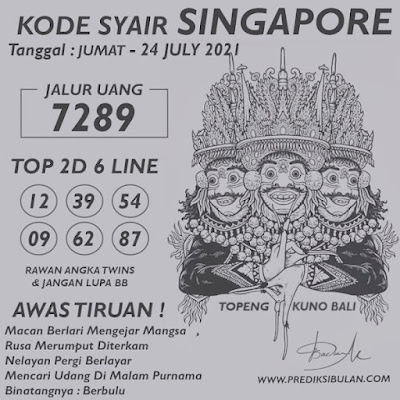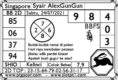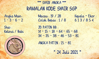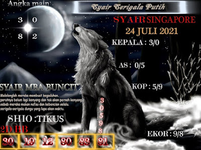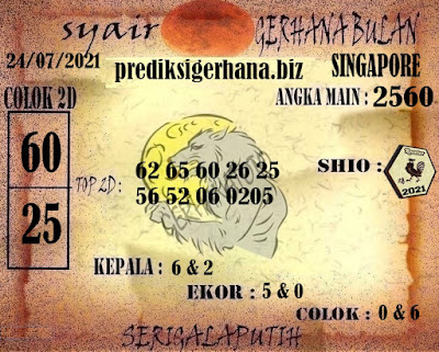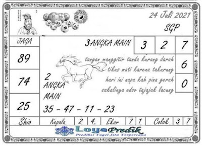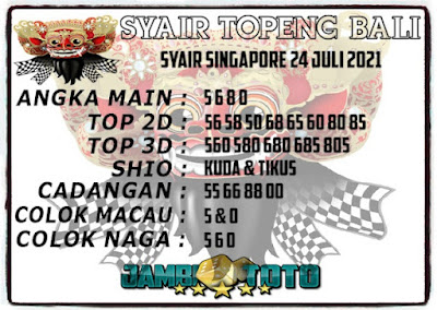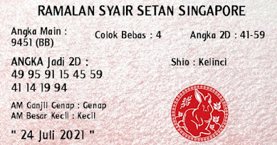 Pada dasarnya dalam semua permainan togel online ini sangatlah membutuhkan kepekaan atau kesadaran anda dalam membaca serta memprediksi nomor togel singapore. Oleh karena itu syair Togel Singapore yang kami terbitkan ini akan sangat memudahkan para pejudi online saat memprediksi angka keluaran di periode selanjutnya. kami sudah mempersiapkan dengan jelas tentang Prediksi togel Sgp 24 Juli 2021 untuk anda para pencinta judi online.