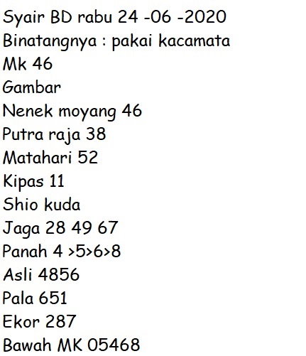 Tetap pergunakan naluri diri sendiri untuk membaca serta mengerti makna asal Syair Sgp 24 Juni 2020. Para Pemain Judi Online sebaiknya jangan terlalu terburu – buru dalam membaca makna yang berasal dari prediksi syair sgp kami. Pahamilah secara pelan serta pilih salah satu diantara syair yang paling banyak dicari oleh para pecinta togel online. Meskipun syair togel yang kami berikan ini sangat banyak serta beraneka ragam, tetapi pada dasarnya ada beberapa syair yang sangat banyak dicari seperti syair kampleng, syair pandawa, syair mbah semar, serta syair naga mas.