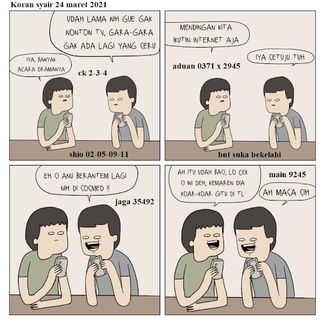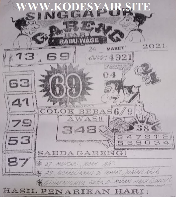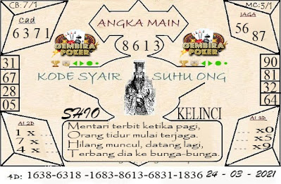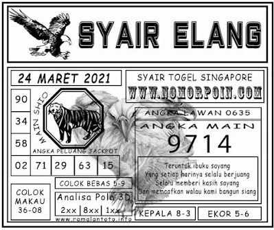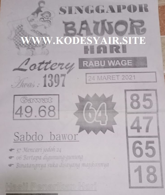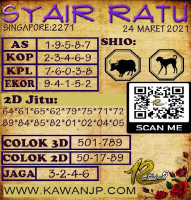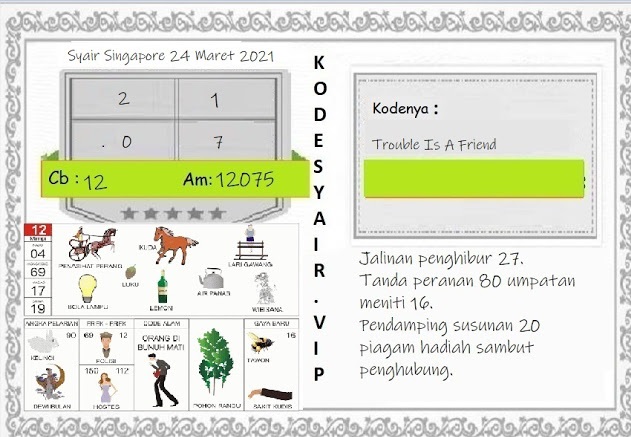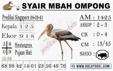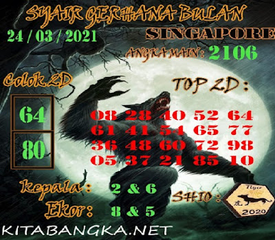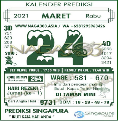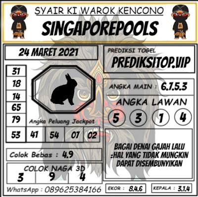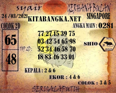 Pada dasarnya dalam semua permainan togel online ini sangatlah membutuhkan kepekaan atau kesadaran anda dalam membaca serta memprediksi nomor togel singapore. Oleh karena itu syair Togel Singapore yang kami terbitkan ini akan sangat memudahkan para pejudi online saat memprediksi angka keluaran di periode selanjutnya. kami sudah mempersiapkan dengan jelas tentang Prediksi togel Sgp 24 Maret 2021 untuk anda para pencinta judi online.