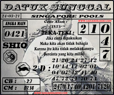 Tetap pergunakan naluri diri sendiri untuk membaca serta mengerti makna asal Syair Sgp 24 Maret 2021. Para Pemain Judi Online sebaiknya jangan terlalu terburu – buru dalam membaca makna yang berasal dari prediksi syair singapore kami. Pahamilah secara pelan serta pilih salah satu diantara syair yang paling banyak dicari oleh para pecinta togel online. Meskipun syair togel yang kami berikan ini sangat banyak serta beraneka ragam, tetapi pada dasarnya ada beberapa syair yang sangat banyak dicari seperti syair kampleng, syair pandawa, syair mbah semar, serta syair naga mas.
