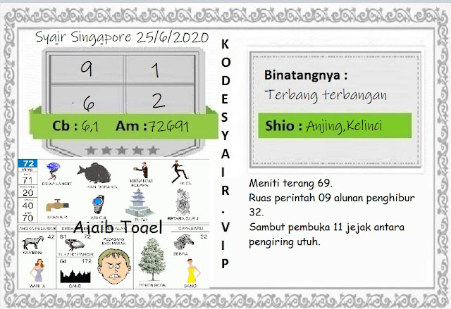 Pada dasarnya dalam semua permainan togel online ini sangatlah membutuhkan kepekaan atau kesadaran anda dalam membaca serta memprediksi nomor togel singapore. Oleh karena itu syair Togel Singapore yang kami terbitkan ini akan sangat memudahkan para pejudi online saat memprediksi angka keluaran di periode selanjutnya. kami sudah mempersiapkan dengan jelas tentang Prediksi togel Sgp 25 Juni 2020 untuk anda para pencinta judi online.