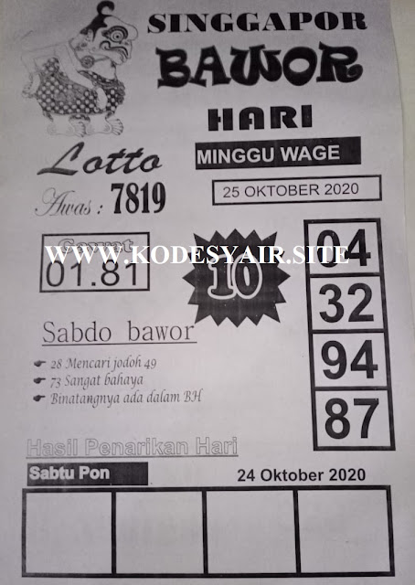 Pada dasarnya dalam semua permainan togel online ini sangatlah membutuhkan kepekaan atau kesadaran anda dalam membaca serta memprediksi nomor togel singapore. Oleh karena itu syair Togel Singapore yang kami terbitkan ini akan sangat memudahkan para pejudi online saat memprediksi angka keluaran di periode selanjutnya. kami sudah mempersiapkan dengan jelas tentang Prediksi togel singapore 25 October 2020 untuk anda para pencinta judi online.