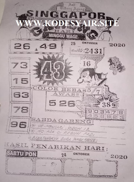 Tetap pergunakan naluri diri sendiri untuk membaca serta mengerti makna asal Syair Sgp 25 October 2020. Para Pemain Judi Online sebaiknya jangan terlalu terburu – buru dalam membaca makna yang berasal dari prediksi syair sgp kami. Pahamilah secara pelan serta pilih salah satu diantara syair yang paling banyak dicari oleh para pecinta togel online. Meskipun syair togel yang kami berikan ini sangat banyak serta beraneka ragam, tetapi pada dasarnya ada beberapa syair yang sangat banyak dicari seperti syair kampleng, syair pandawa, syair mbah semar, serta syair naga mas.