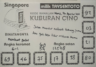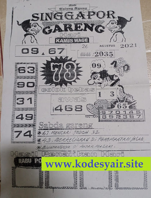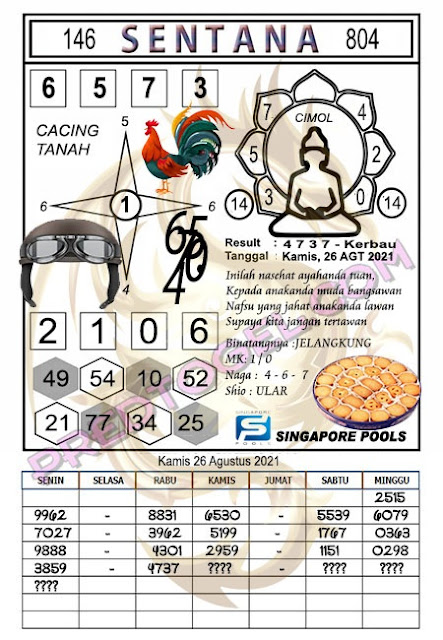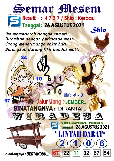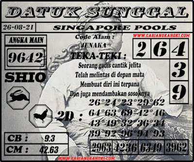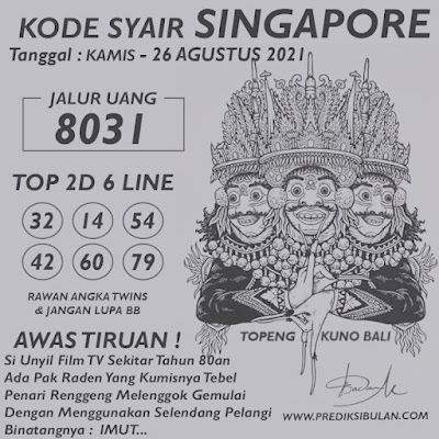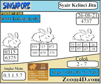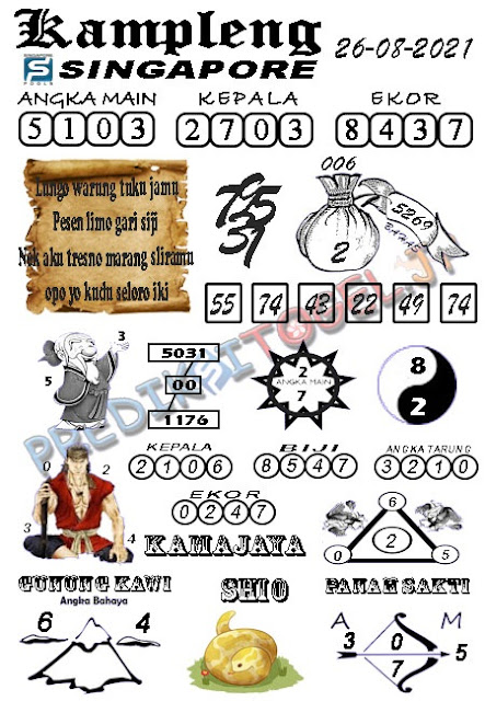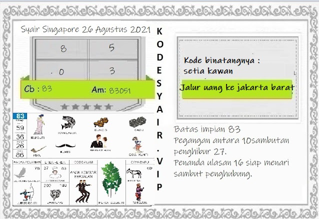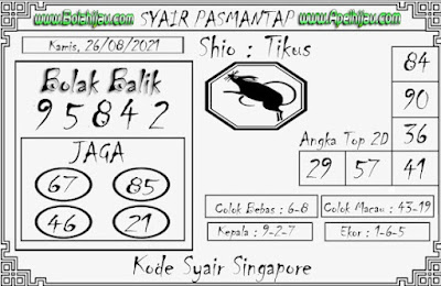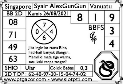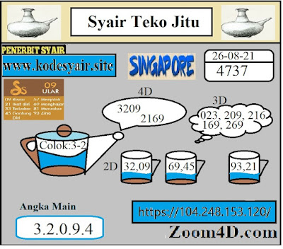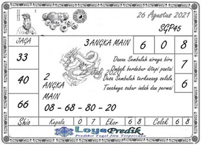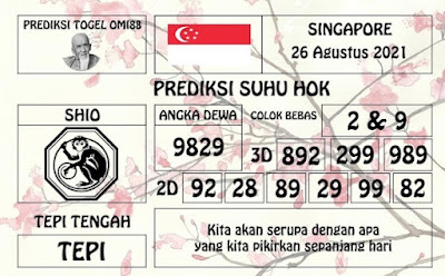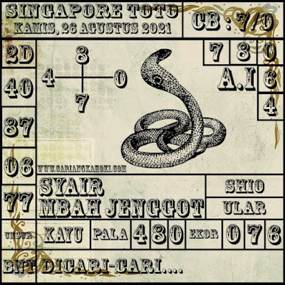 Pada dasarnya dalam semua permainan togel online ini sangatlah membutuhkan kepekaan atau kesadaran anda dalam membaca serta memprediksi nomor togel singapore. Oleh karena itu syair Togel Singapore yang kami terbitkan ini akan sangat memudahkan para pejudi online saat memprediksi angka keluaran di periode selanjutnya. kami sudah mempersiapkan dengan jelas tentang Prediksi togel Sgp 26 Agustus 2021 untuk anda para pencinta judi online.
