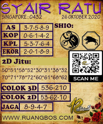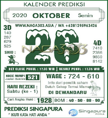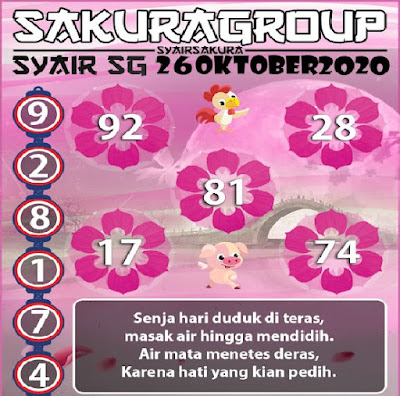 Pada dasarnya dalam semua permainan togel online ini sangatlah membutuhkan kepekaan atau kesadaran anda dalam membaca serta memprediksi nomor togel singapore. Oleh karena itu syair Togel Singapore yang kami terbitkan ini akan sangat memudahkan para pejudi online saat memprediksi angka keluaran di periode selanjutnya. kami sudah mempersiapkan dengan jelas tentang Prediksi togel Sgp 26 October 2020 untuk anda para pencinta judi online.