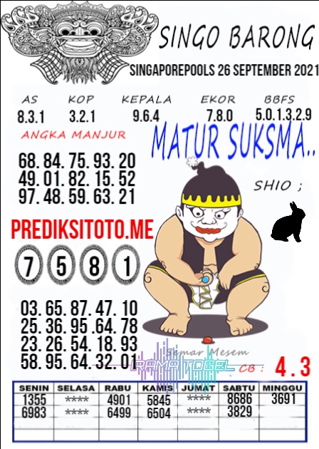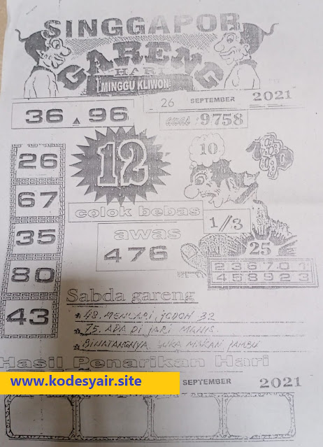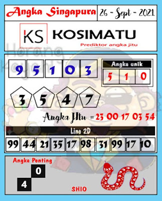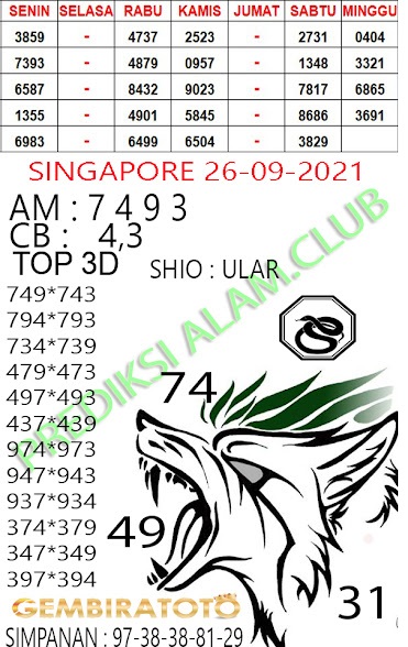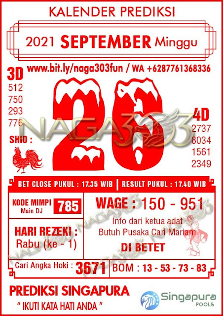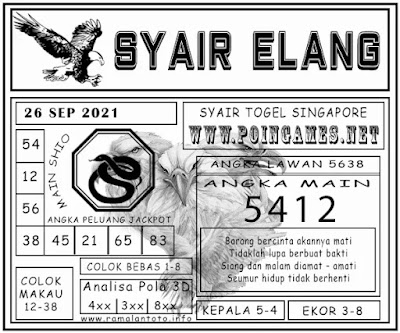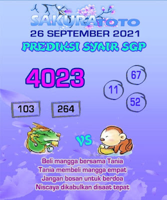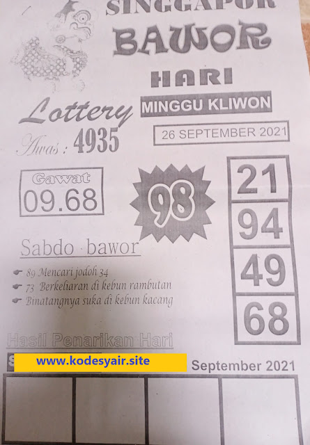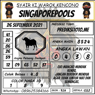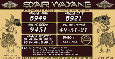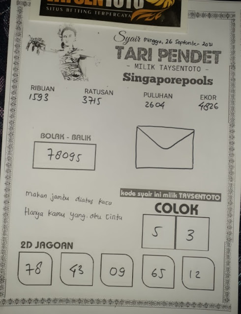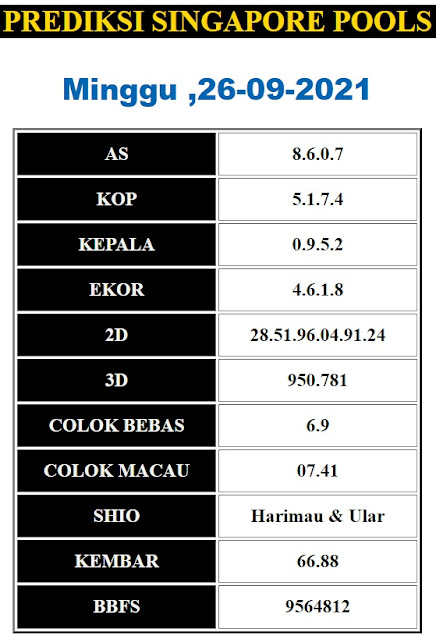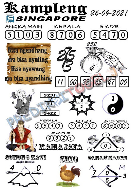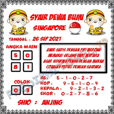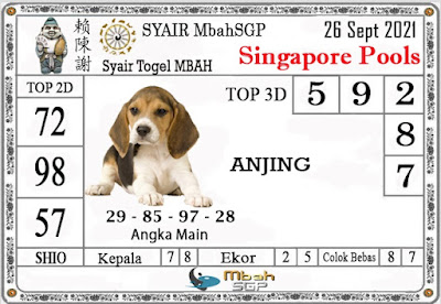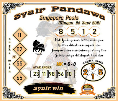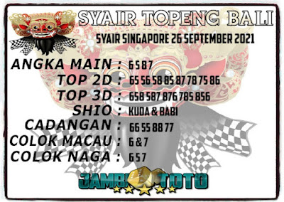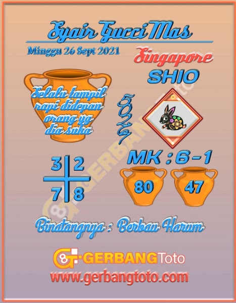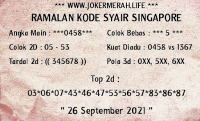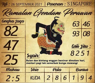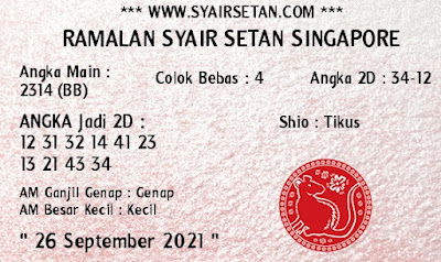 Pada dasarnya dalam semua permainan togel online ini sangatlah membutuhkan kepekaan atau kesadaran anda dalam membaca serta memprediksi nomor togel singapore. Oleh karena itu syair Togel Singapore yang kami terbitkan ini akan sangat memudahkan para pejudi online saat memprediksi angka keluaran di periode selanjutnya. kami sudah mempersiapkan dengan jelas tentang Prediksi togel Sgp 26 September 2021 untuk anda para pencinta judi online.