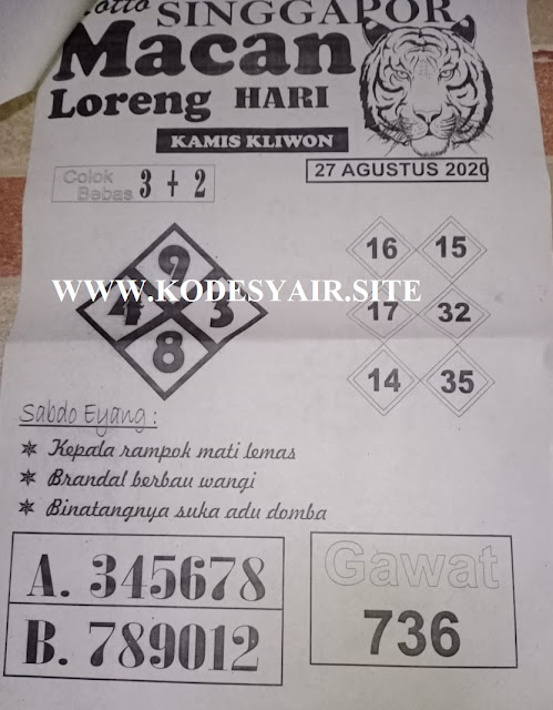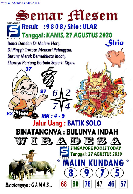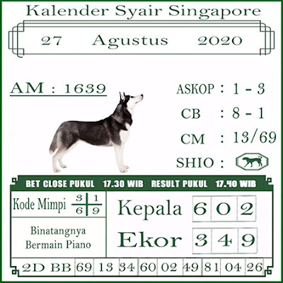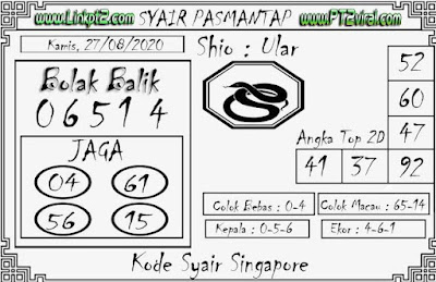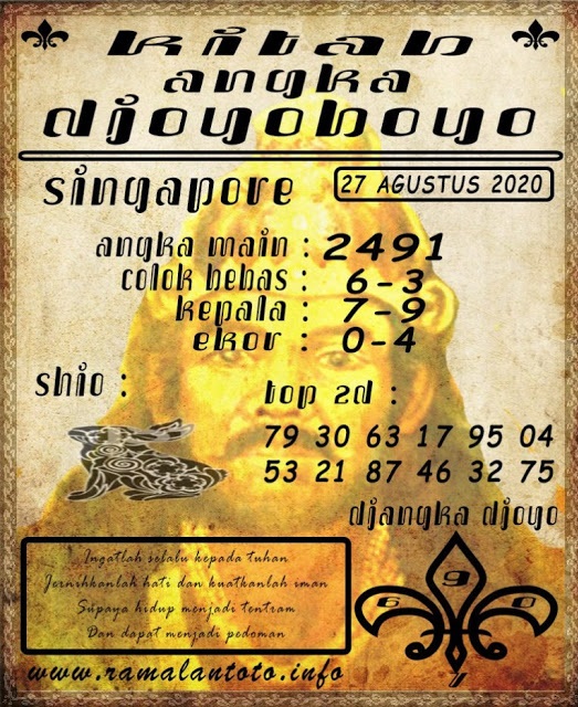 Pada dasarnya dalam semua permainan togel online ini sangatlah membutuhkan kepekaan atau kesadaran anda dalam membaca serta memprediksi nomor togel singapore. Oleh karena itu syair Togel Singapore yang kami terbitkan ini akan sangat memudahkan para pejudi online saat memprediksi angka keluaran di periode selanjutnya. kami sudah mempersiapkan dengan jelas tentang Prediksi Togel Sgp 27 Agustus 2020 untuk anda para pencinta judi online.