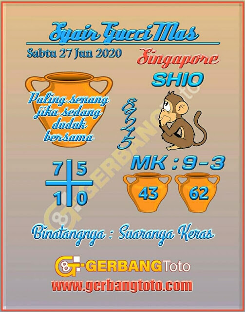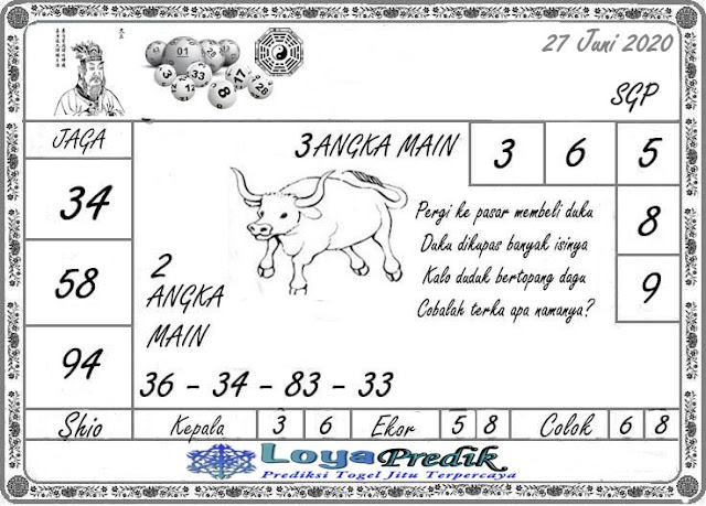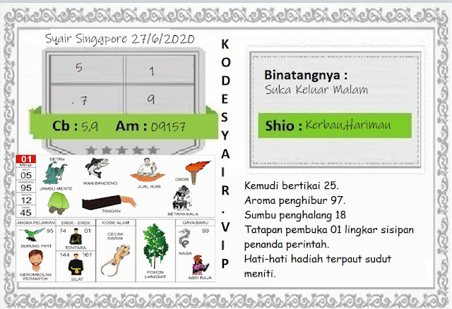 Pada dasarnya dalam semua permainan togel online ini sangatlah membutuhkan kepekaan atau kesadaran anda dalam membaca serta memprediksi nomor togel singapore. Oleh karena itu syair Togel Singapore yang kami terbitkan ini akan sangat memudahkan para pejudi online saat memprediksi angka keluaran di periode selanjutnya. kami sudah mempersiapkan dengan jelas tentang Prediksi togel singapore 27 Juni 2020 untuk anda para pencinta judi online.