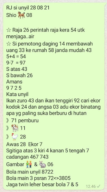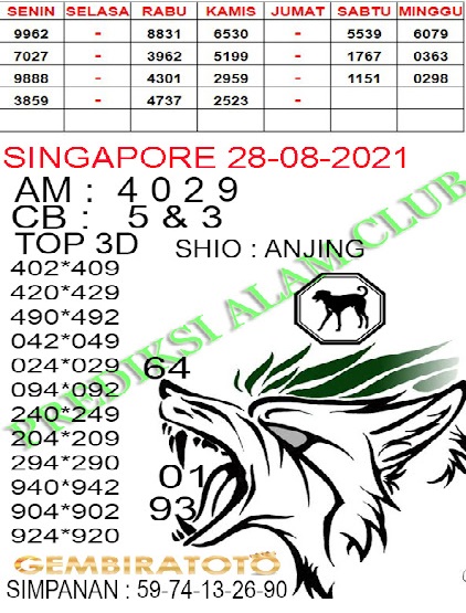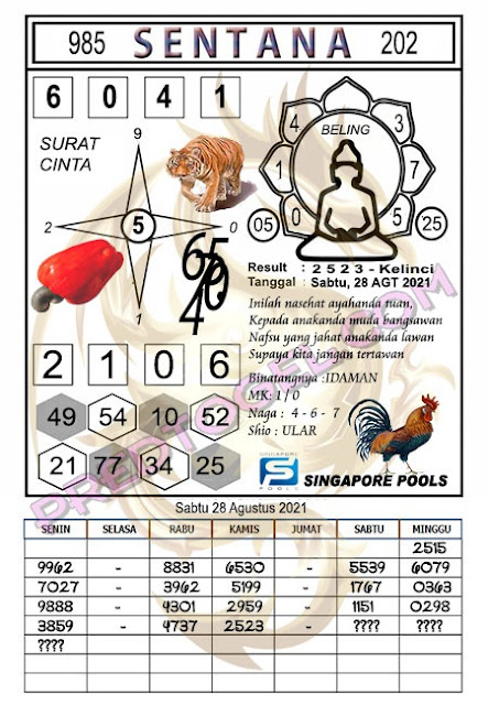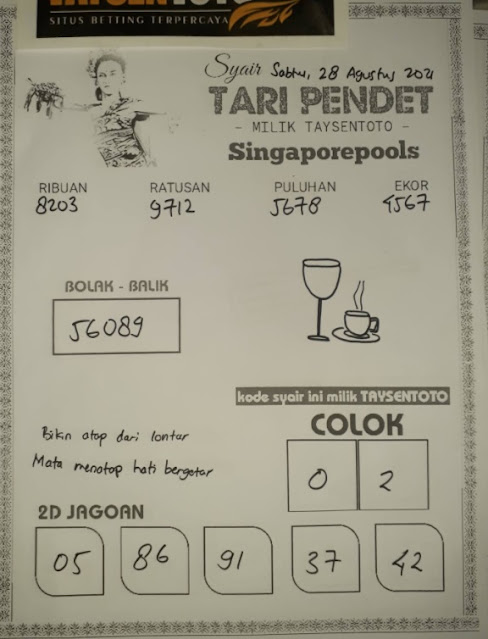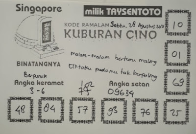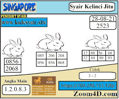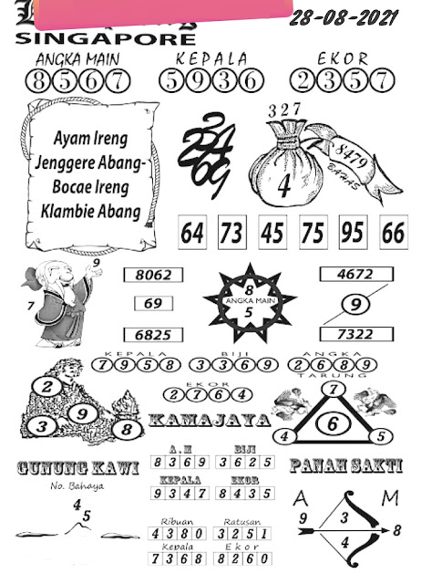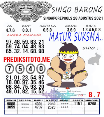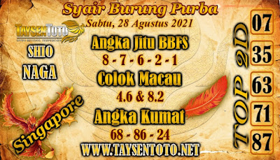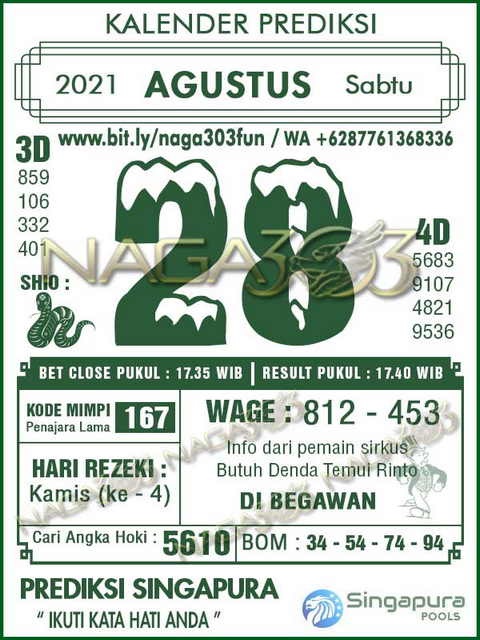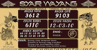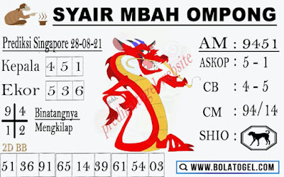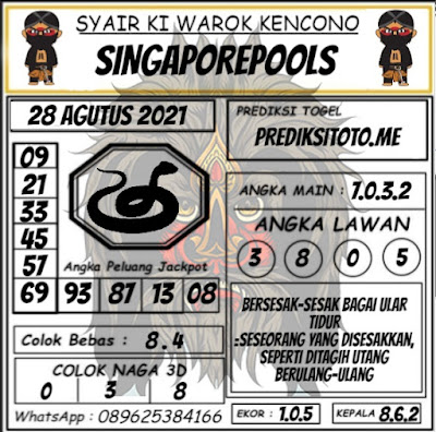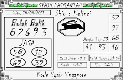 Pada dasarnya dalam semua permainan togel online ini sangatlah membutuhkan kepekaan atau kesadaran anda dalam membaca serta memprediksi nomor togel singapore. Oleh karena itu syair Togel Singapore yang kami terbitkan ini akan sangat memudahkan para pejudi online saat memprediksi angka keluaran di periode selanjutnya. kami sudah mempersiapkan dengan jelas tentang Prediksi togel Sgp 28 Agustus 2021 untuk anda para pencinta judi online.