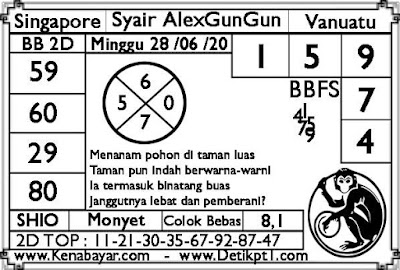 Pada dasarnya dalam semua permainan togel online ini sangatlah membutuhkan kepekaan atau kesadaran anda dalam membaca serta memprediksi nomor togel singapore. Oleh karena itu syair Togel Singapore yang kami terbitkan ini akan sangat memudahkan para pejudi online saat memprediksi angka keluaran di periode selanjutnya. kami sudah mempersiapkan dengan jelas tentang Prediksi togel Sgp 28 Juni 2020 untuk anda para pencinta judi online.