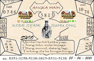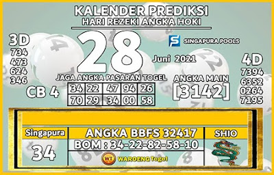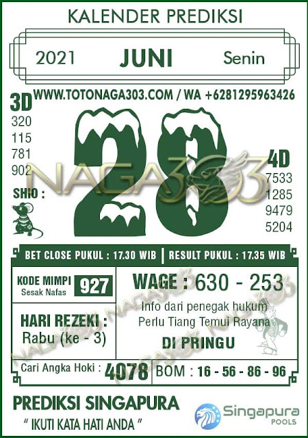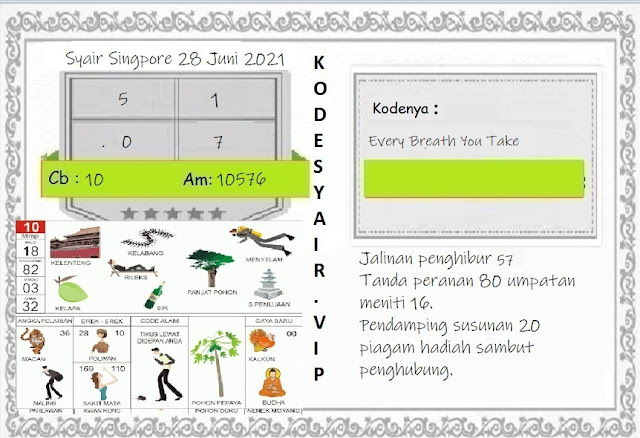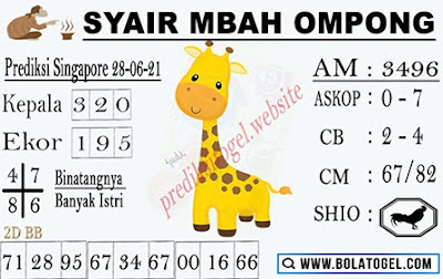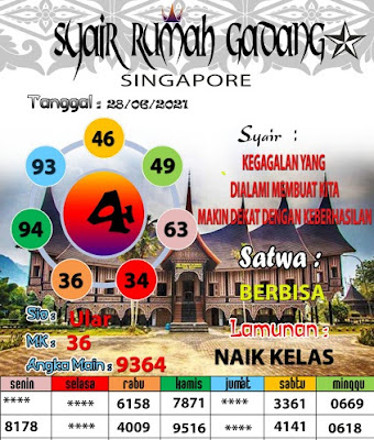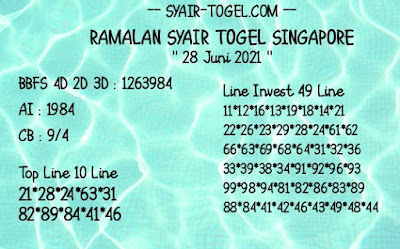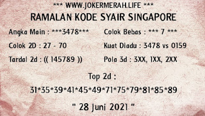 Pada dasarnya dalam semua permainan togel online ini sangatlah membutuhkan kepekaan atau kesadaran anda dalam membaca serta memprediksi nomor togel singapore. Oleh karena itu syair Togel Singapore yang kami terbitkan ini akan sangat memudahkan para pejudi online saat memprediksi angka keluaran di periode selanjutnya. kami sudah mempersiapkan dengan jelas tentang Prediksi togel Sgp 28 Jumi 2021 untuk anda para pencinta judi online.