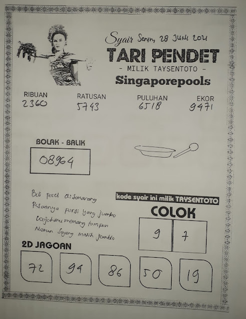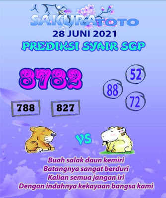 Tetap pergunakan naluri diri sendiri untuk membaca serta mengerti makna asal Syair Sgp 28 Juni 2021. Para Pemain Judi Online sebaiknya jangan terlalu terburu – buru dalam membaca makna yang berasal dari prediksi syair singapore kami. Pahamilah secara pelan serta pilih salah satu diantara syair yang paling banyak dicari oleh para pecinta togel online. Meskipun syair togel yang kami berikan ini sangat banyak serta beraneka ragam, tetapi pada dasarnya ada beberapa syair yang sangat banyak dicari seperti syair kampleng, syair pandawa, syair mbah semar, serta syair naga mas.