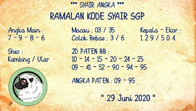 Pada dasarnya dalam semua permainan togel online ini sangatlah membutuhkan kepekaan atau kesadaran anda dalam membaca serta memprediksi nomor togel singapore. Oleh karena itu syair Togel Singapore yang kami terbitkan ini akan sangat memudahkan para pejudi online saat memprediksi angka keluaran di periode selanjutnya. kami sudah mempersiapkan dengan jelas tentang Prediksi togel Sgp 29 Juni 2020 untuk anda para pencinta judi online.