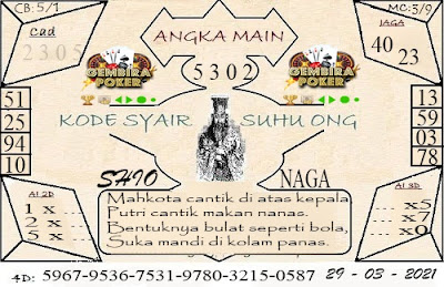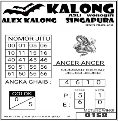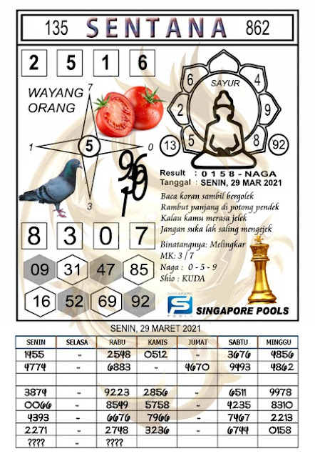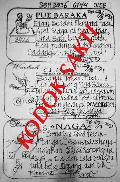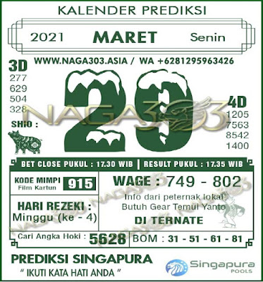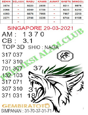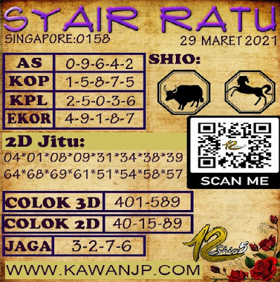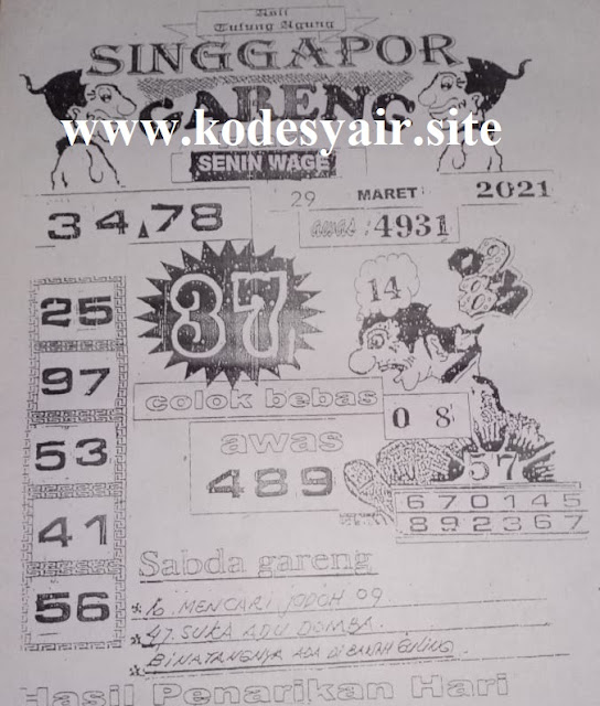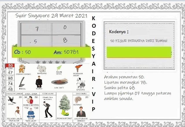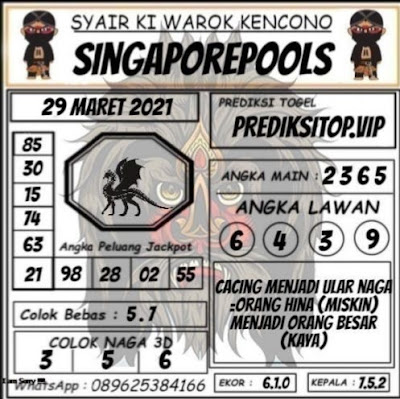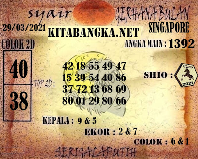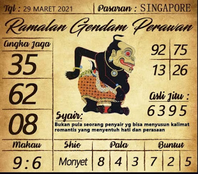 Pada dasarnya dalam semua permainan togel online ini sangatlah membutuhkan kepekaan atau kesadaran anda dalam membaca serta memprediksi nomor togel singapore. Oleh karena itu syair Togel Singapore yang kami terbitkan ini akan sangat memudahkan para pejudi online saat memprediksi angka keluaran di periode selanjutnya. kami sudah mempersiapkan dengan jelas tentang Prediksi togel Sgp 29 Maret 2021 untuk anda para pencinta judi online.