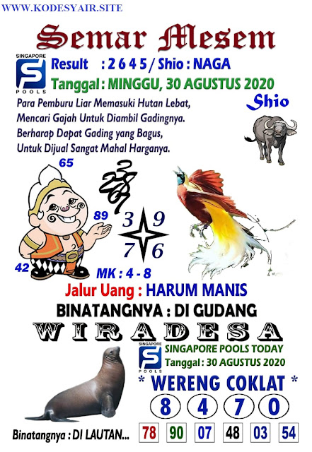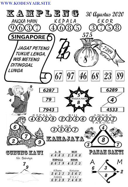 Pada dasarnya dalam semua permainan togel online ini sangatlah membutuhkan kepekaan atau kesadaran anda dalam membaca serta memprediksi nomor togel singapore. Oleh karena itu syair Togel Singapore yang kami terbitkan ini akan sangat memudahkan para pejudi online saat memprediksi angka keluaran di periode selanjutnya. kami sudah mempersiapkan dengan jelas tentang Prediksi togel Sgp 30 Agustus 2020 untuk anda para pencinta judi online.