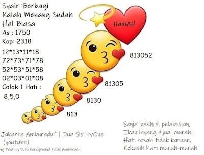 Tetap pergunakan naluri diri sendiri untuk membaca serta mengerti makna asal Syair Sgp 30 November 2020. Para Pemain Judi Online sebaiknya jangan terlalu terburu – buru dalam membaca makna yang berasal dari prediksi syair sgp kami. Pahamilah secara pelan serta pilih salah satu diantara syair yang paling banyak dicari oleh para pecinta togel online. Meskipun syair togel yang kami berikan ini sangat banyak serta beraneka ragam, tetapi pada dasarnya ada beberapa syair yang sangat banyak dicari seperti syair kampleng, syair pandawa, syair mbah semar, serta syair naga mas.