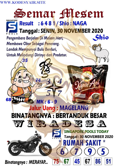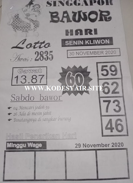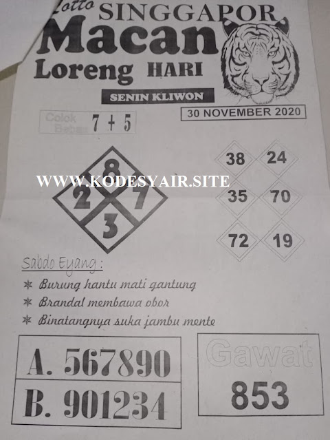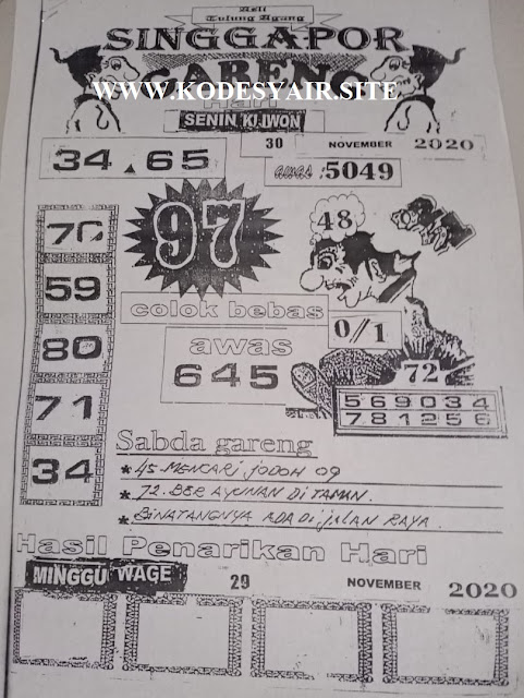 Pada dasarnya dalam semua permainan togel online ini sangatlah membutuhkan kepekaan atau kesadaran anda dalam membaca serta memprediksi nomor togel singapore. Oleh karena itu syair Togel Singapore yang kami terbitkan ini akan sangat memudahkan para pejudi online saat memprediksi angka keluaran di periode selanjutnya. kami sudah mempersiapkan dengan jelas tentang Prediksi Togel Singapore 30 November 2020 untuk anda para pencinta judi online.