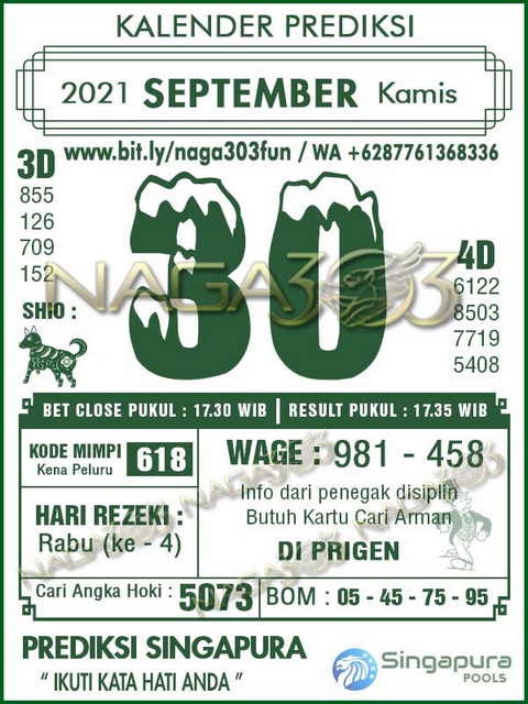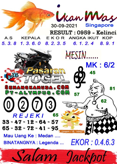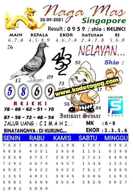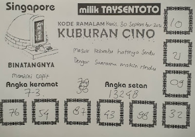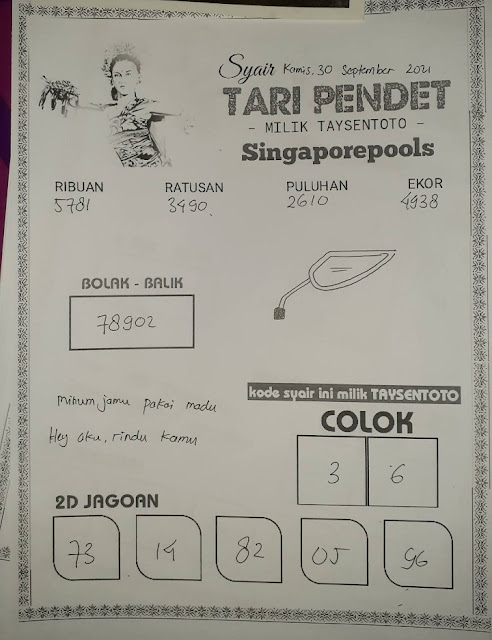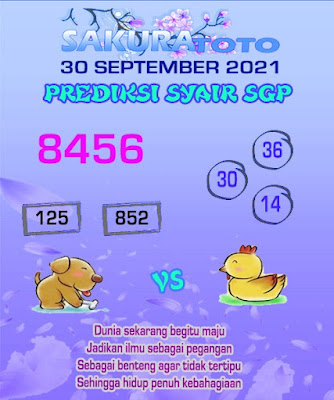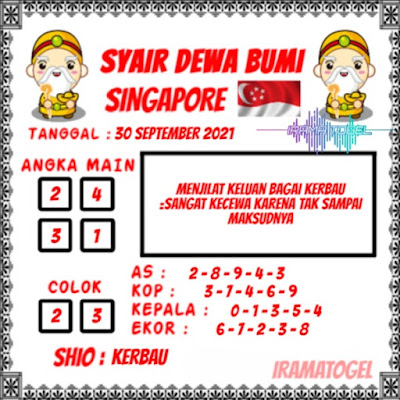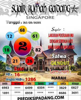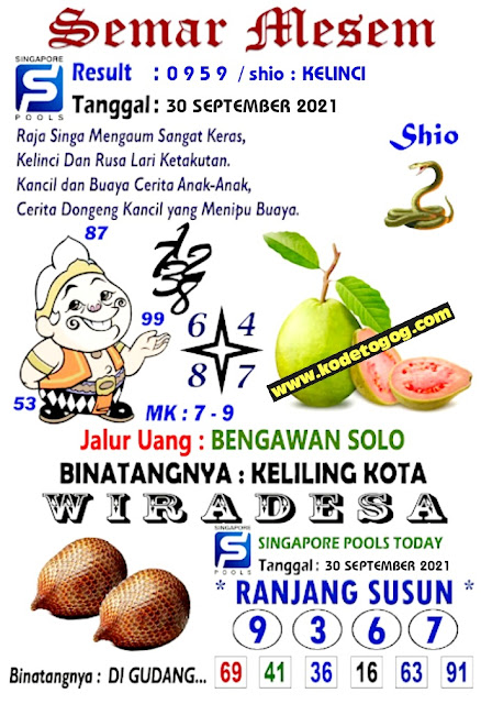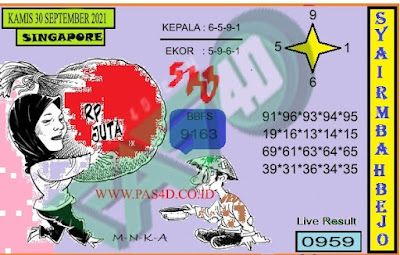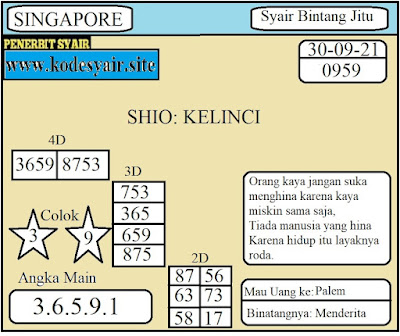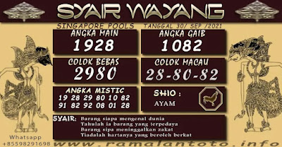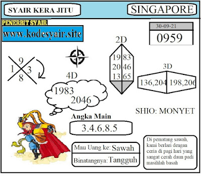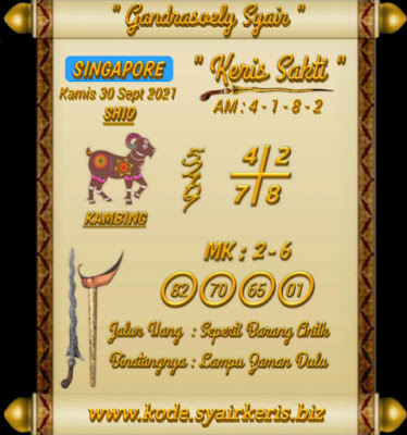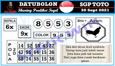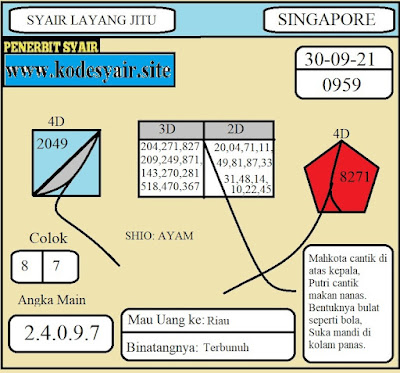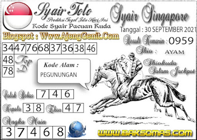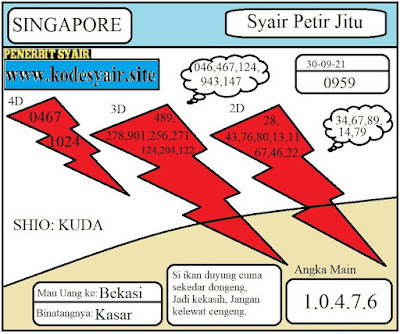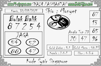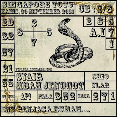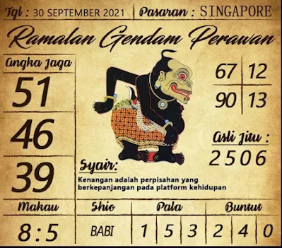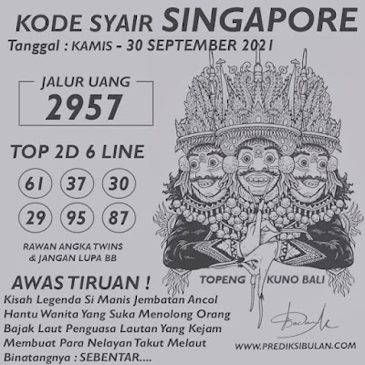 Pada dasarnya dalam semua permainan togel online ini sangatlah membutuhkan kepekaan atau kesadaran anda dalam membaca serta memprediksi nomor togel singapore. Oleh karena itu syair Togel Singapore yang kami terbitkan ini akan sangat memudahkan para pejudi online saat memprediksi angka keluaran di periode selanjutnya. kami sudah mempersiapkan dengan jelas tentang Prediksi togel Sgp 30 September 2021 untuk anda para pencinta judi online.