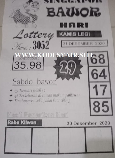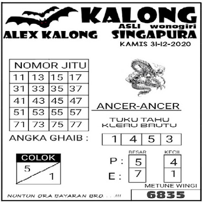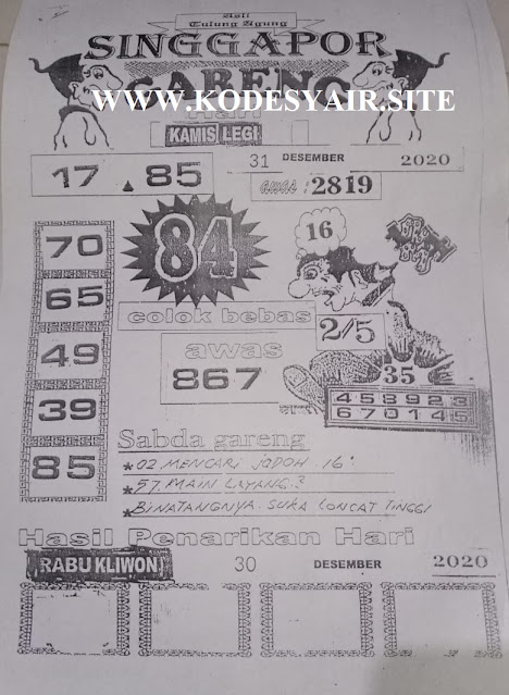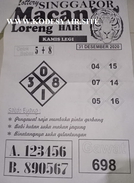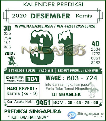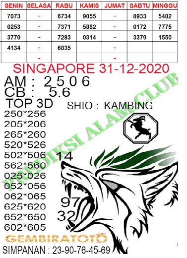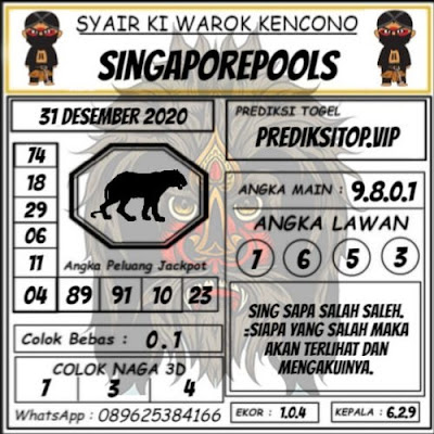 Pada dasarnya dalam semua permainan togel online ini sangatlah membutuhkan kepekaan atau kesadaran anda dalam membaca serta memprediksi nomor togel singapore. Oleh karena itu syair Togel Singapore yang kami terbitkan ini akan sangat memudahkan para pejudi online saat memprediksi angka keluaran di periode selanjutnya. kami sudah mempersiapkan dengan jelas tentang Prediksi Togel Sgp 31 Desember 2020 untuk anda para pencinta judi online.