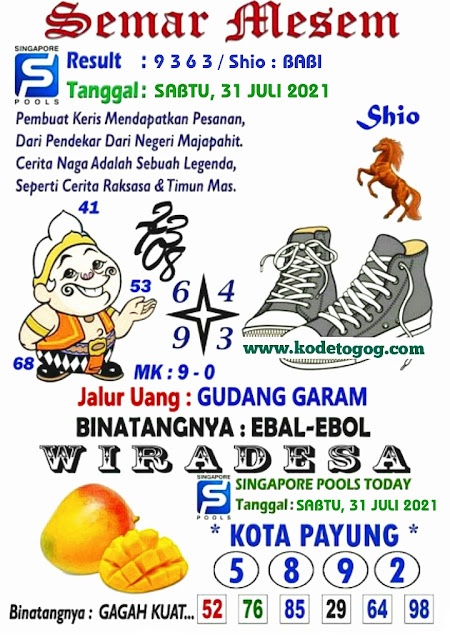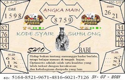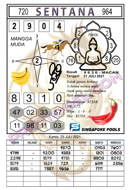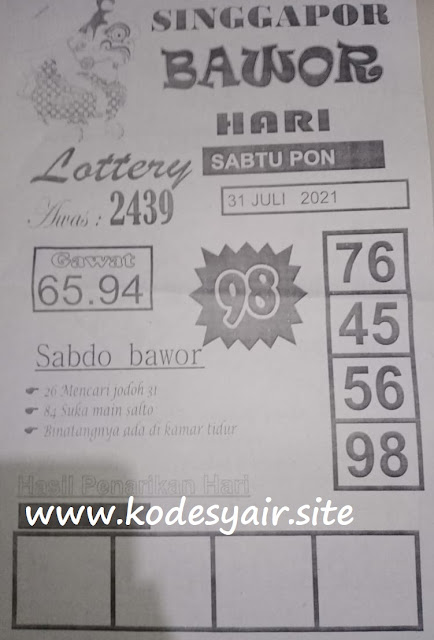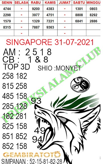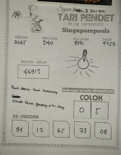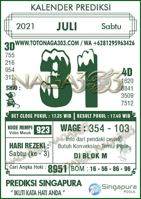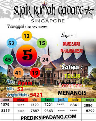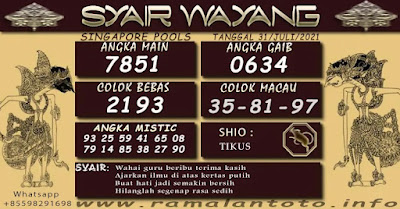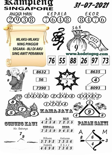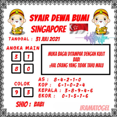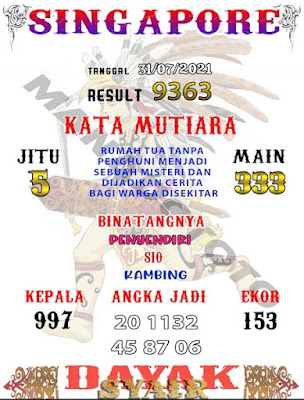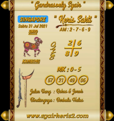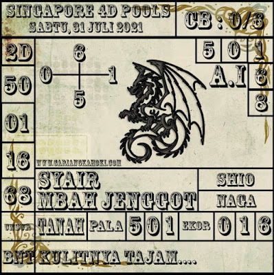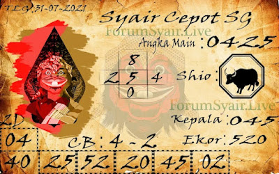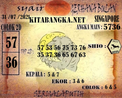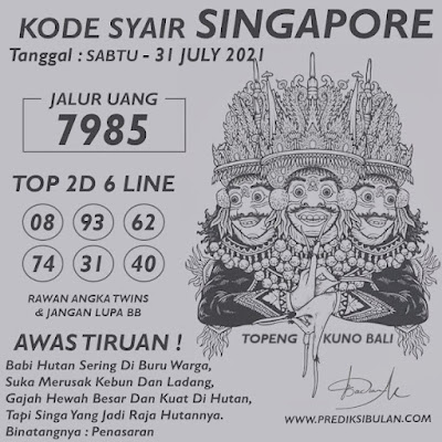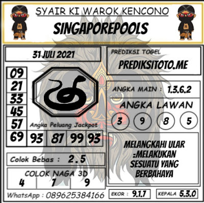 Pada dasarnya dalam semua permainan togel online ini sangatlah membutuhkan kepekaan atau kesadaran anda dalam membaca serta memprediksi nomor togel singapore. Oleh karena itu syair Togel Singapore yang kami terbitkan ini akan sangat memudahkan para pejudi online saat memprediksi angka keluaran di periode selanjutnya. kami sudah mempersiapkan dengan jelas tentang Prediksi togel Sgp 31 Juli 2021 untuk anda para pencinta judi online.