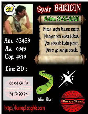 Tetap pergunakan naluri diri sendiri untuk membaca serta mengerti makna asal Syair Sgp 31 Juli 2021. Para Pemain Judi Online sebaiknya jangan terlalu terburu – buru dalam membaca makna yang berasal dari prediksi syair singapore kami. Pahamilah secara pelan serta pilih salah satu diantara syair yang paling banyak dicari oleh para pecinta togel online. Meskipun syair togel yang kami berikan ini sangat banyak serta beraneka ragam, tetapi pada dasarnya ada beberapa syair yang sangat banyak dicari seperti syair kampleng, syair pandawa, syair mbah semar, serta syair naga mas.