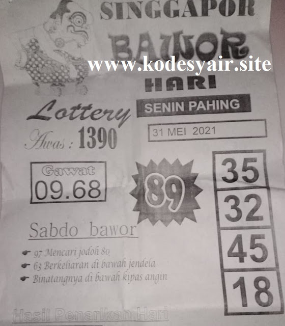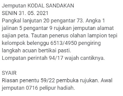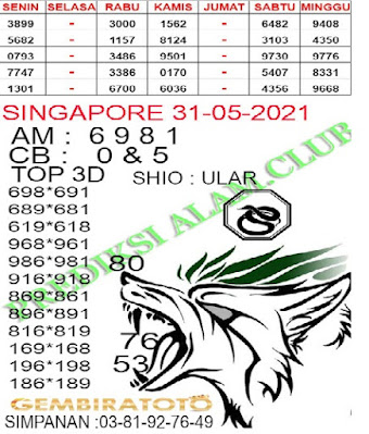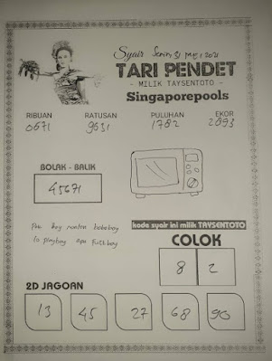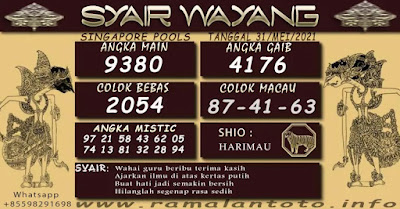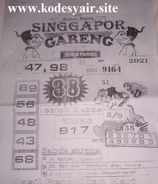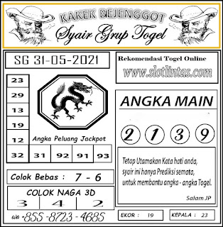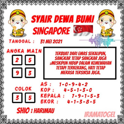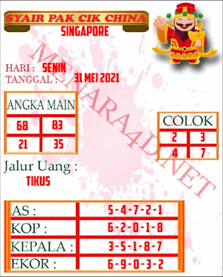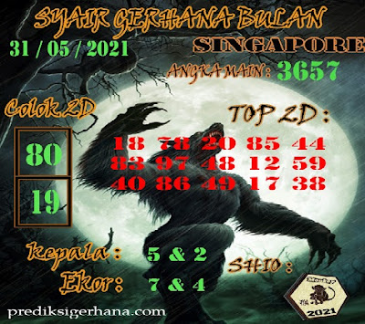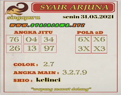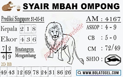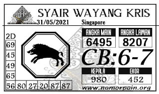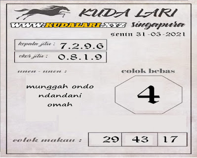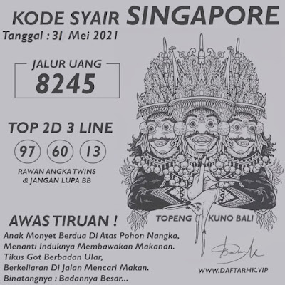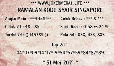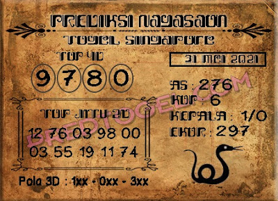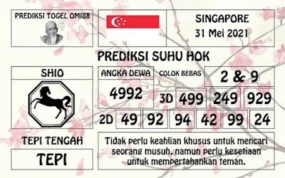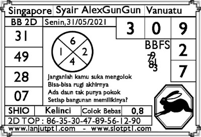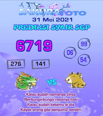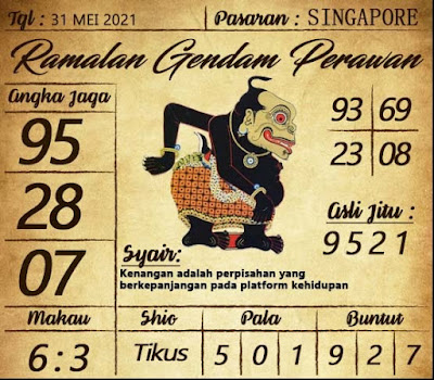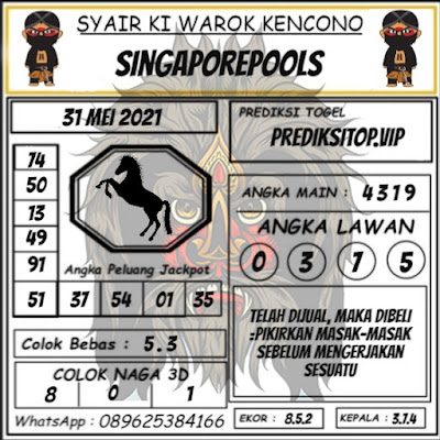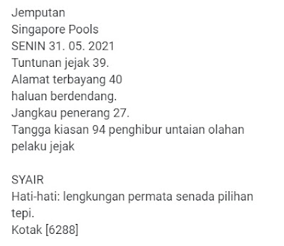Pada dasarnya dalam semua permainan togel online ini sangatlah membutuhkan kepekaan atau kesadaran anda dalam membaca serta memprediksi nomor togel singapore. Oleh karena itu syair Togel Singapore yang kami terbitkan ini akan sangat memudahkan para pejudi online saat memprediksi angka keluaran di periode selanjutnya. kami sudah mempersiapkan dengan jelas tentang Prediksi togel Sgp 31 Mei 2021 untuk anda para pencinta judi online.