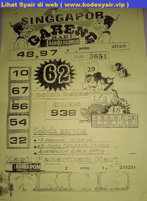 Tetap pergunakan naluri diri sendiri untuk membaca serta mengerti makna asal Syair Sgp 4 April 2020. Para Pemain Judi Online sebaiknya jangan terlalu terburu – buru dalam membaca makna yang berasal dari prediksi syair sgp kami. Pahamilah secara pelan serta pilih salah satu diantara syair yang paling banyak dicari oleh para pecinta togel online. Meskipun syair togel yang kami berikan ini sangat banyak serta beraneka ragam, tetapi pada dasarnya ada beberapa syair yang sangat banyak dicari seperti syair kampleng, syair pandawa, syair mbah semar, serta syair naga mas.