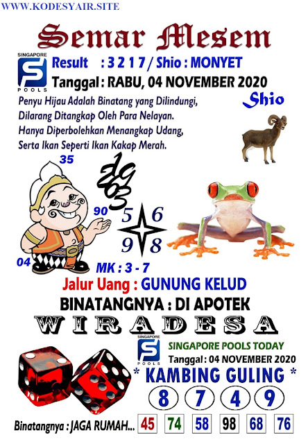 Pada dasarnya dalam semua permainan togel online ini sangatlah membutuhkan kepekaan atau kesadaran anda dalam membaca serta memprediksi nomor togel singapore. Oleh karena itu syair Togel Singapore yang kami terbitkan ini akan sangat memudahkan para pejudi online saat memprediksi angka keluaran di periode selanjutnya. kami sudah mempersiapkan dengan jelas tentang Prediksi togel Sgp 4 November 2020 untuk anda para pencinta judi online.